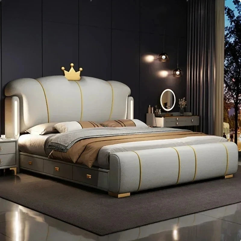 Bedroom Glamorou Double Bed King Size Storage Sleeping Aesthetic Twin Bed Frame Luxury Nordic Letto Matrimoniale Salon Furniture