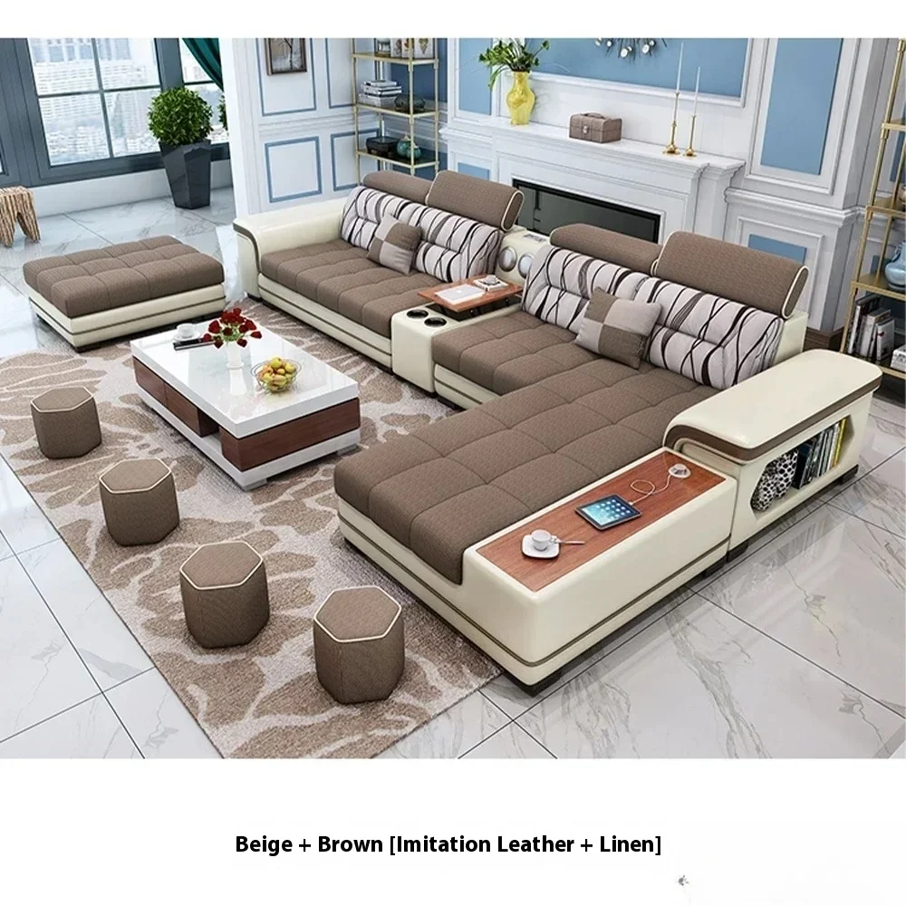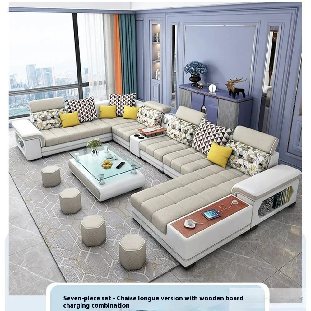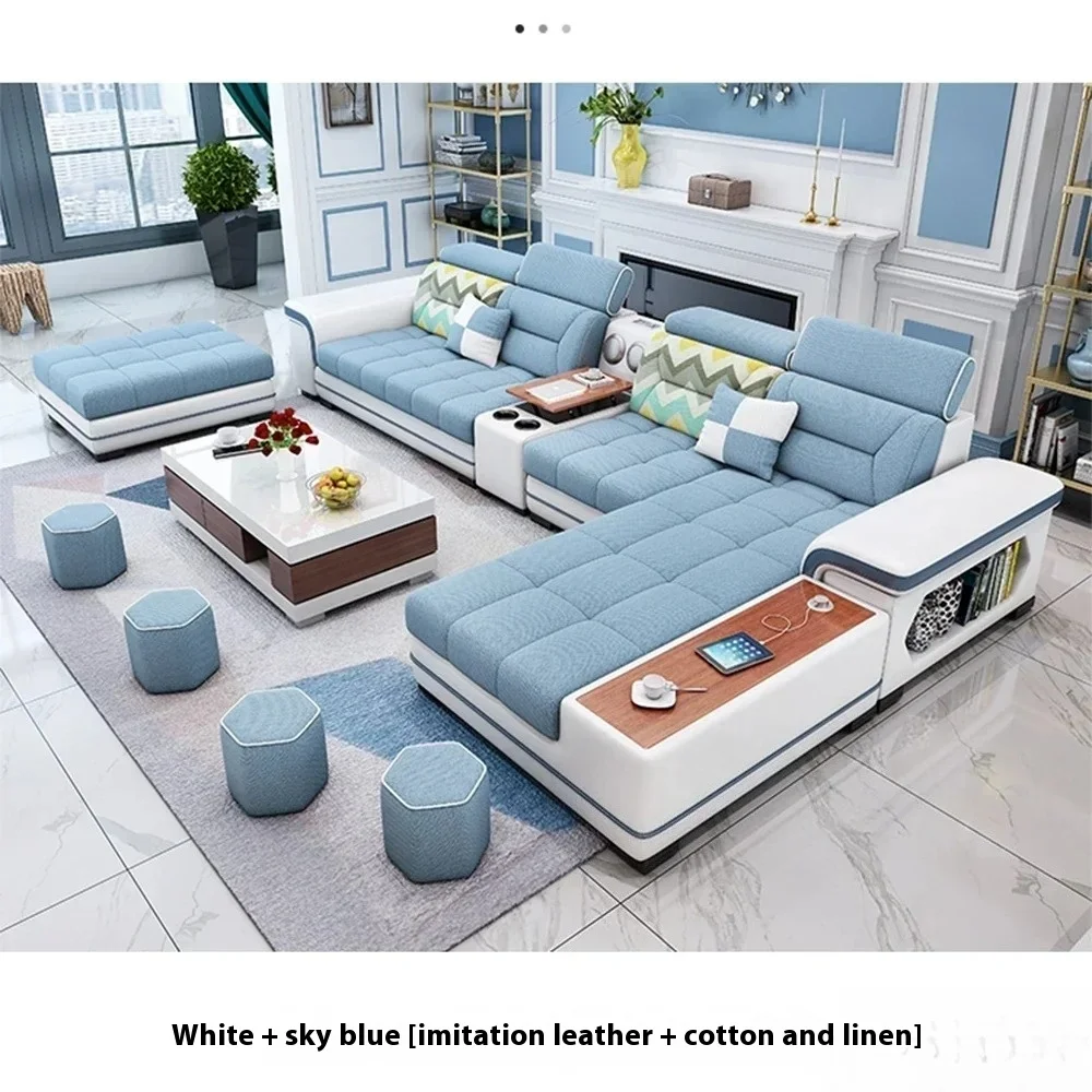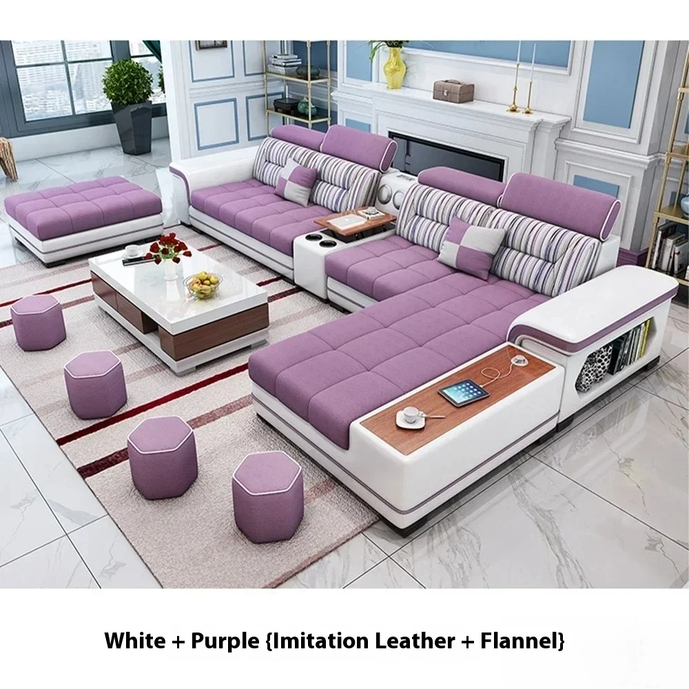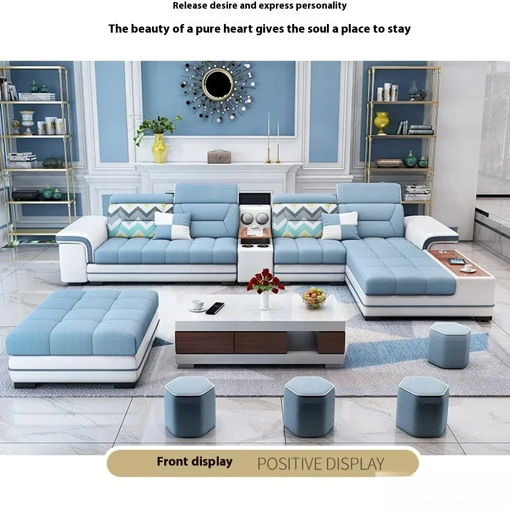 Fabric Sofa Set Furniture Living Room Sofa Set with USB and Stools / Big U Shape Cloth Couch Sofas for Home Furniture