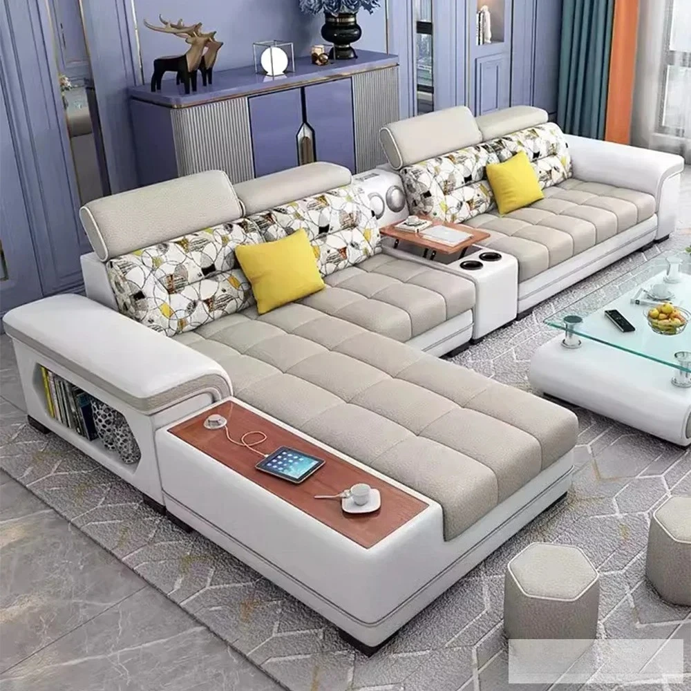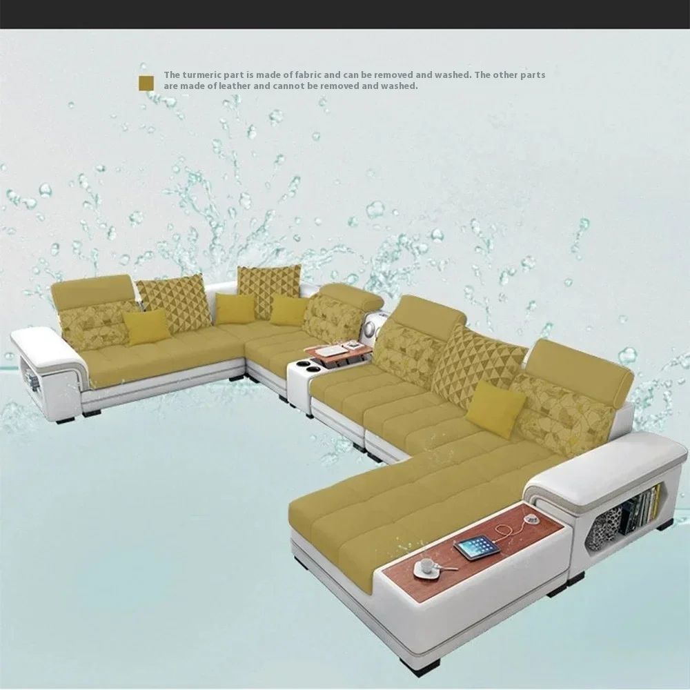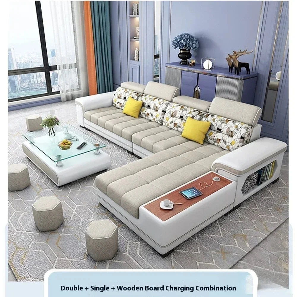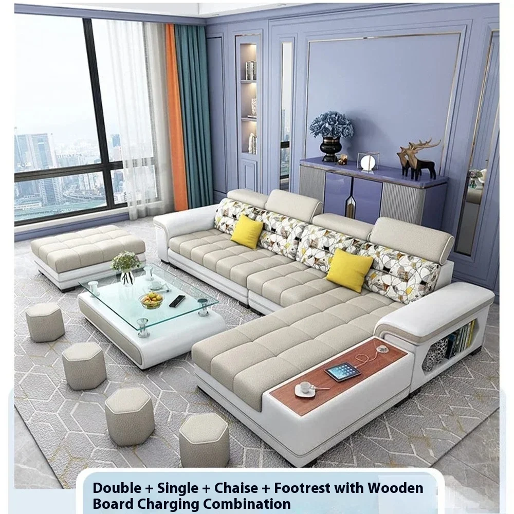 Fabric Sofa Set Furniture Living Room Sofa Set with USB and Stools / Big U Shape Cloth Couch Sofas for Home Furniture