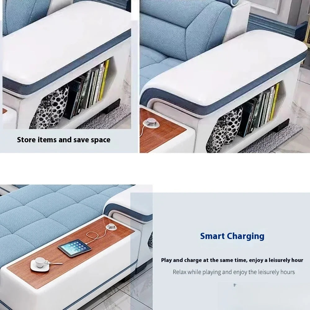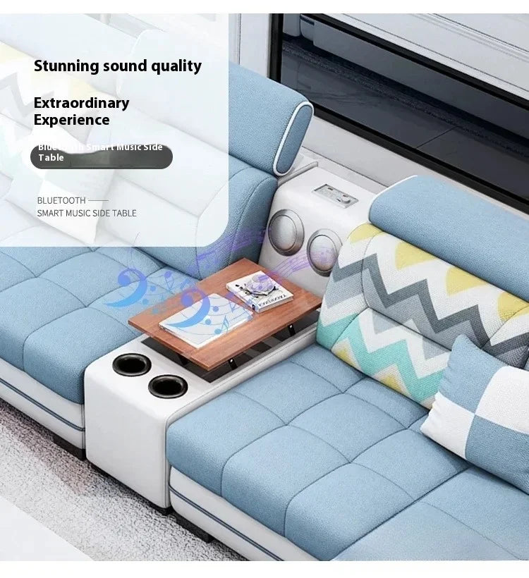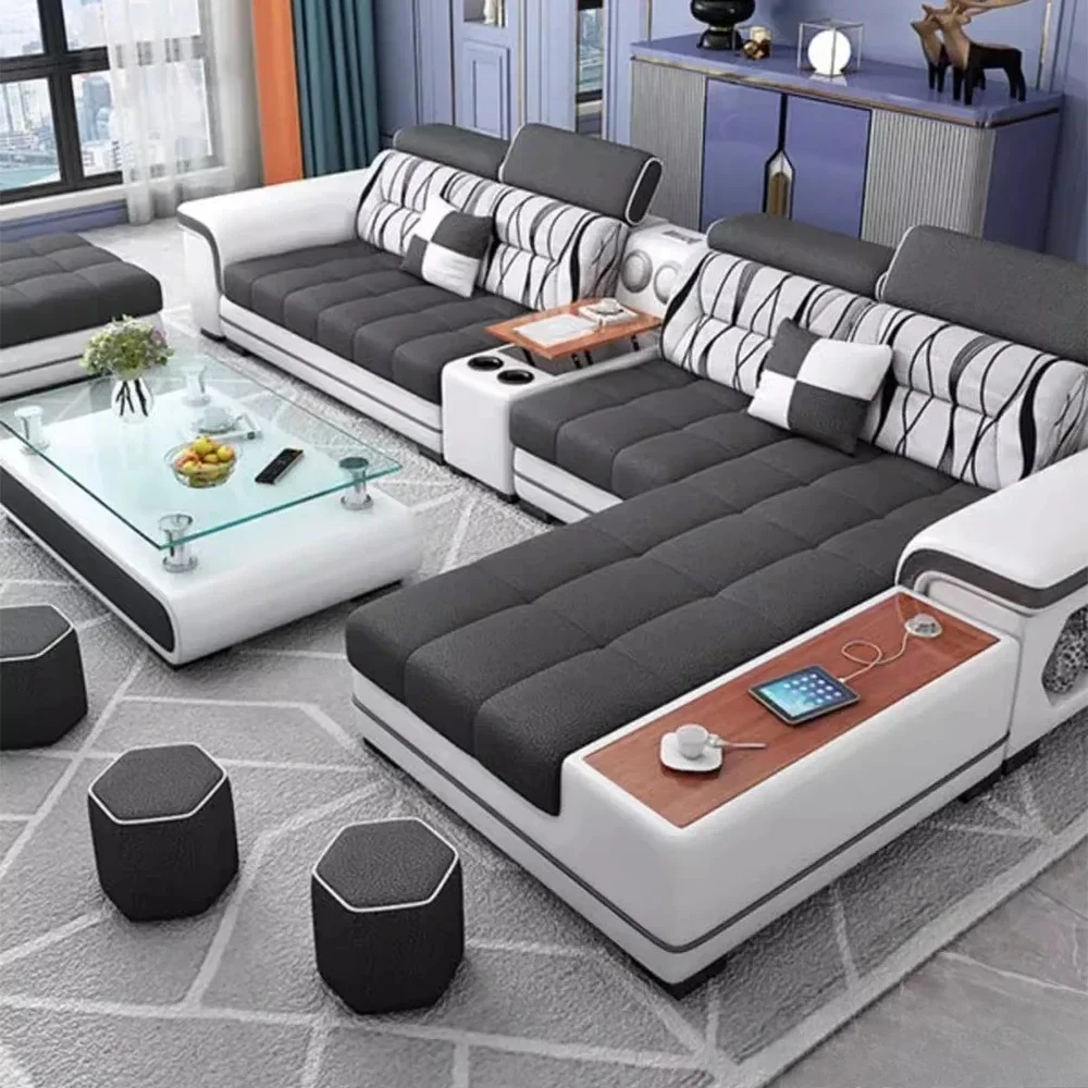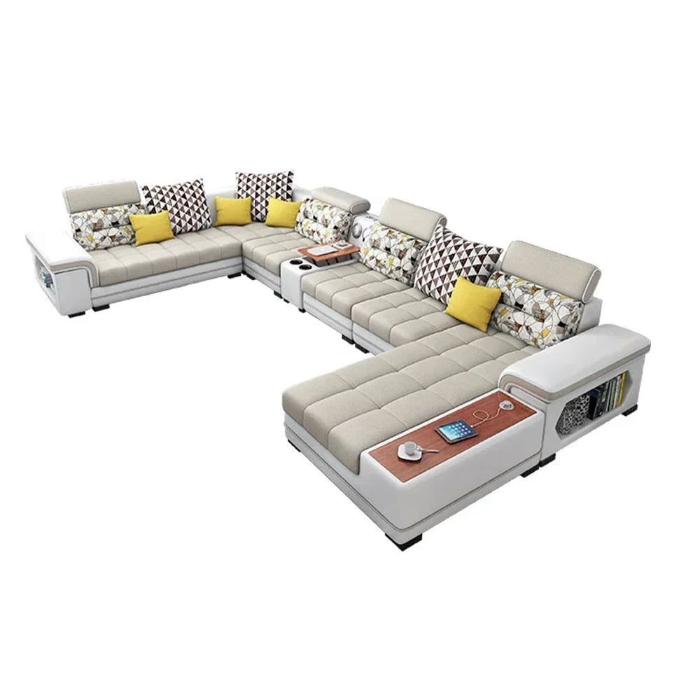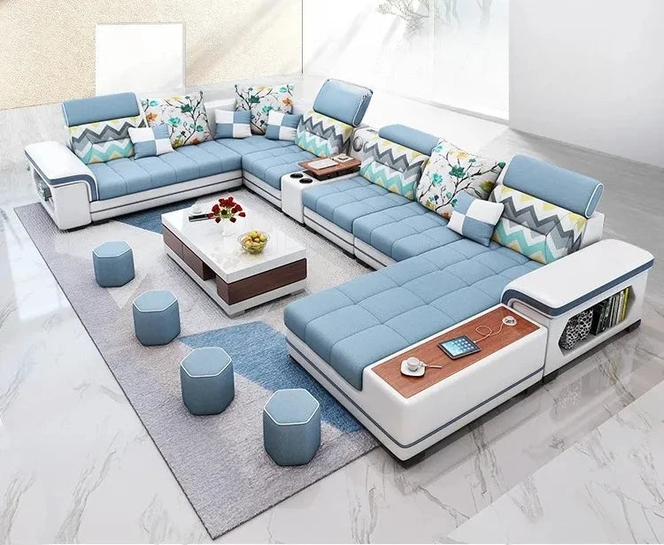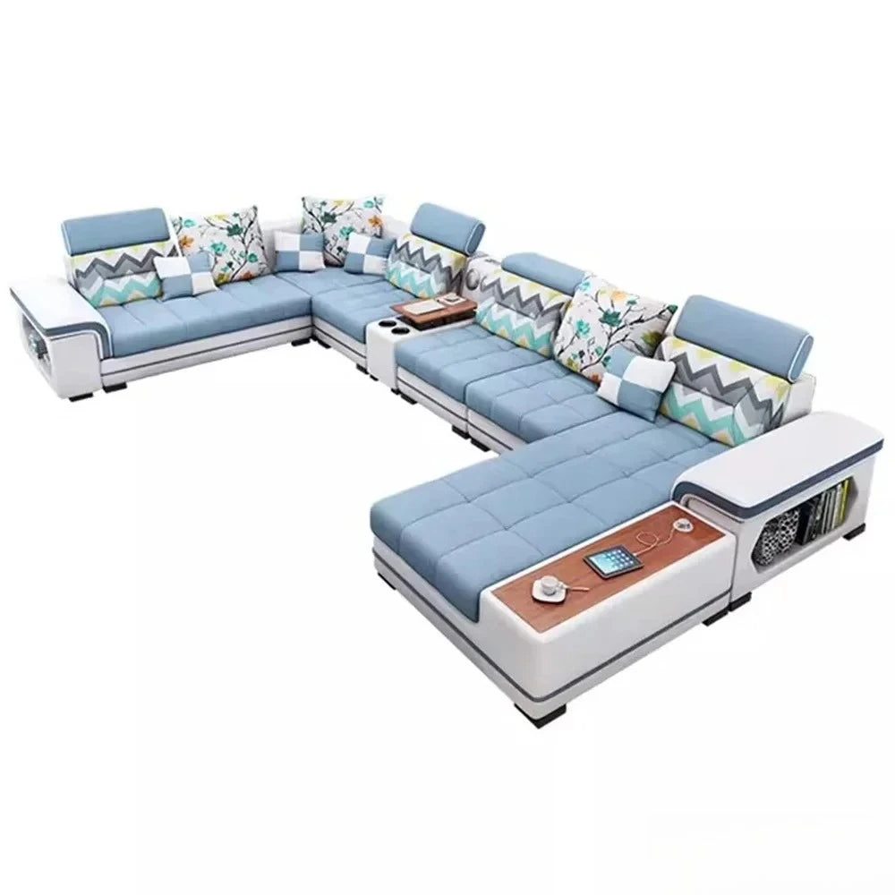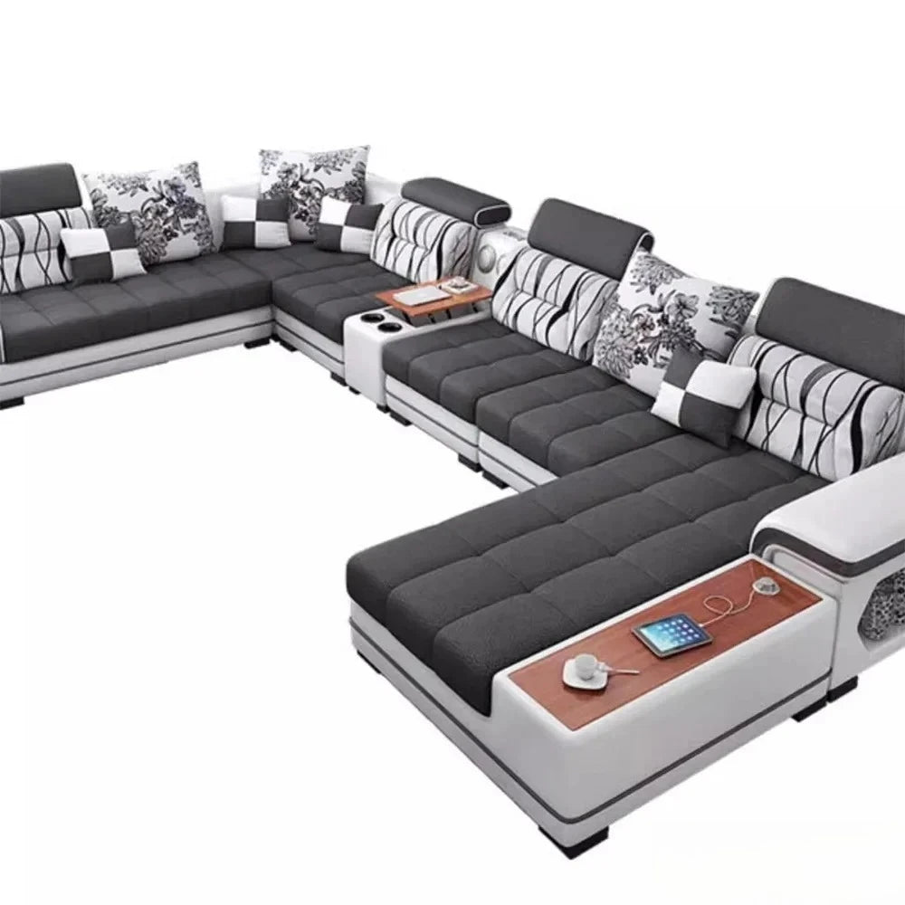 Big U-Shape Coth Living Room Sofa Sets with USB, Speaker, Stools, Bluetooth - MANBAS Fabric Sectional Sofas for Home Furniture