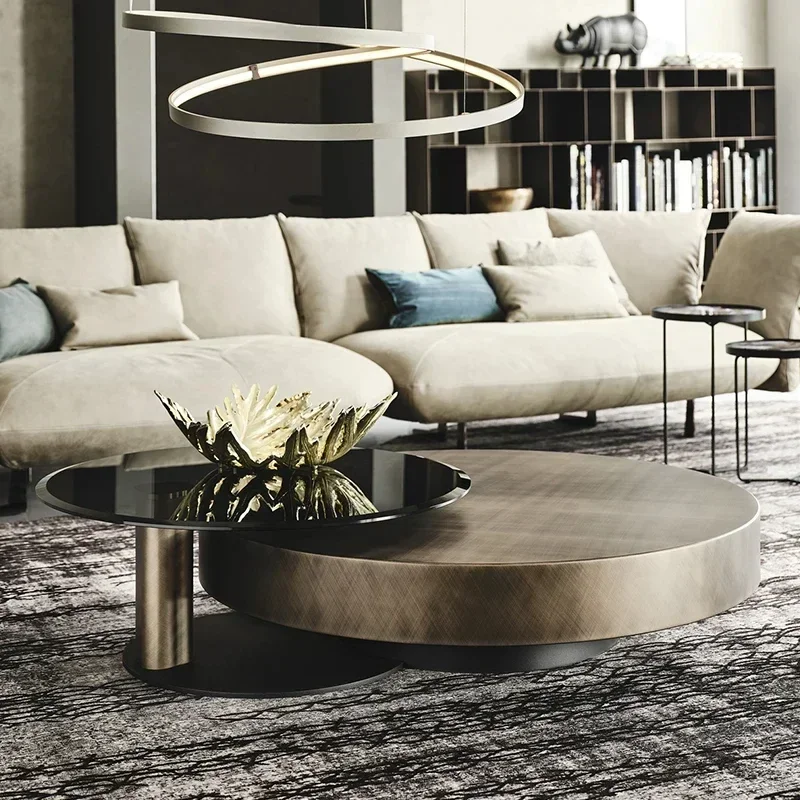 CX029CC Italian Design Antique Graphite Steel Coffee Table Silver Gold Metal Side Table for Living Room Modern Console Table