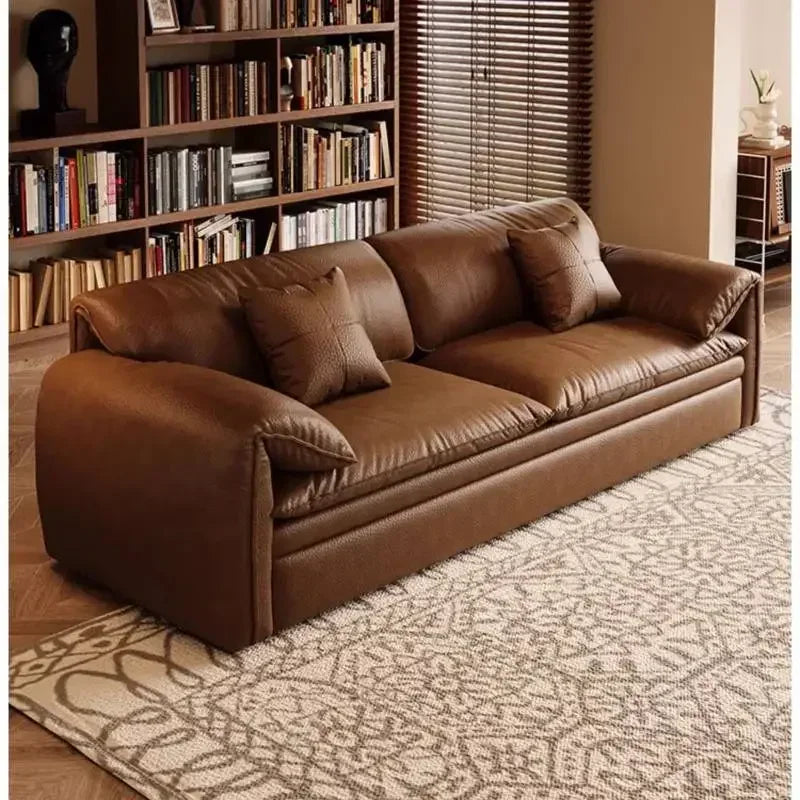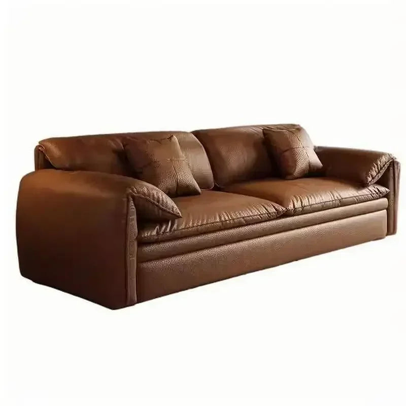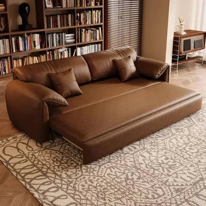 European Living Room Sofa Bed Brown Faux Leather Italian Modern Sleeper Double Couch Chaise Lounge Small Canape Salon Furniture