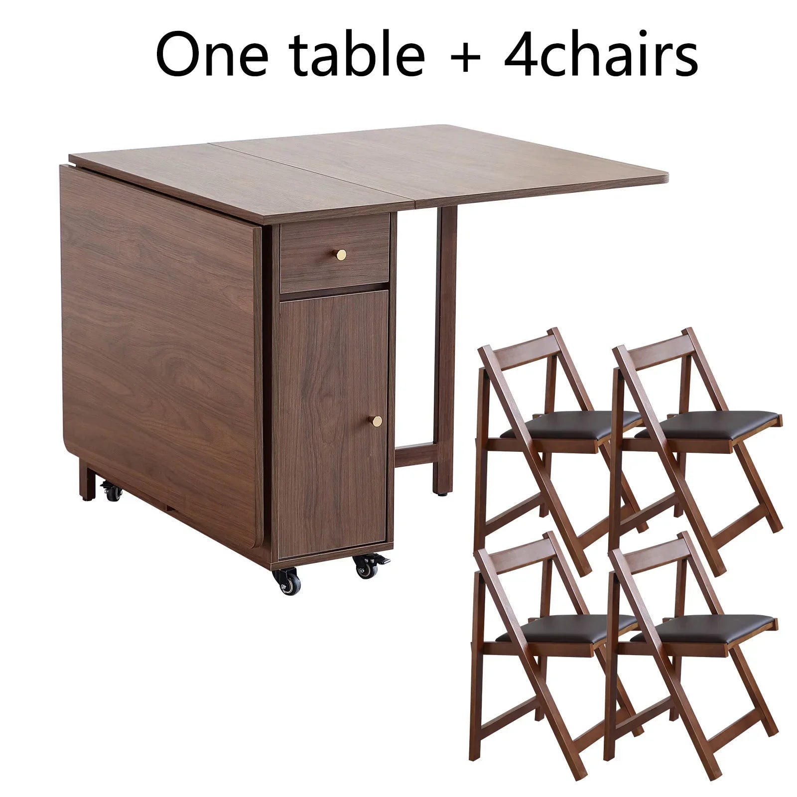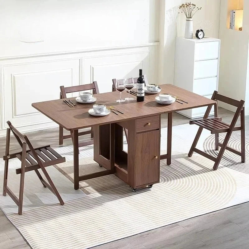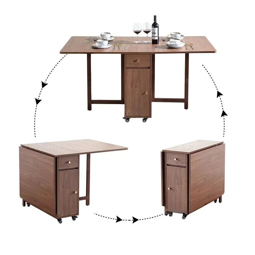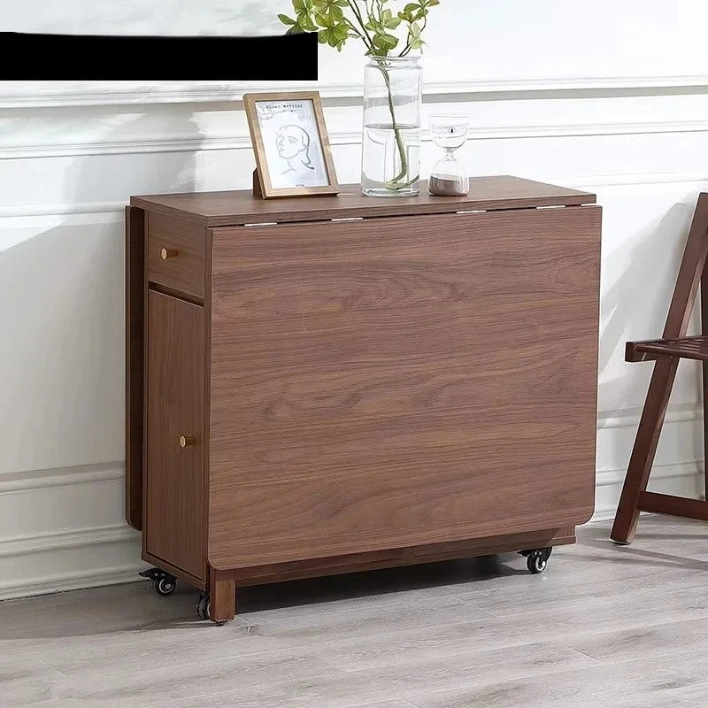 Extendable Drop Leaf Folding Dining Table with 2 Drawers and 4 Wheels for Living Room,Kitchen, Farmhouse, Space Saving Table