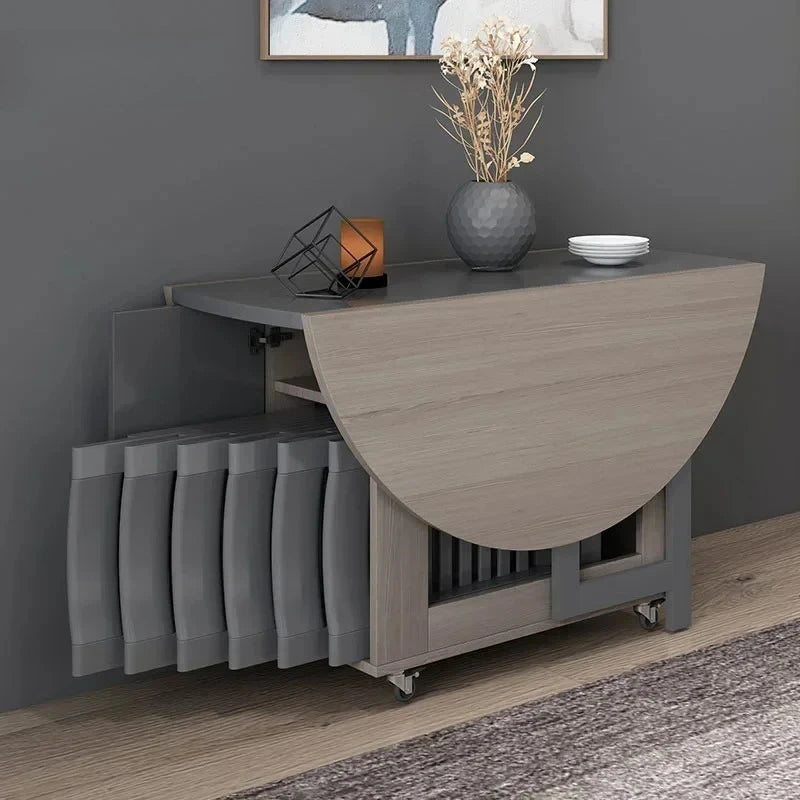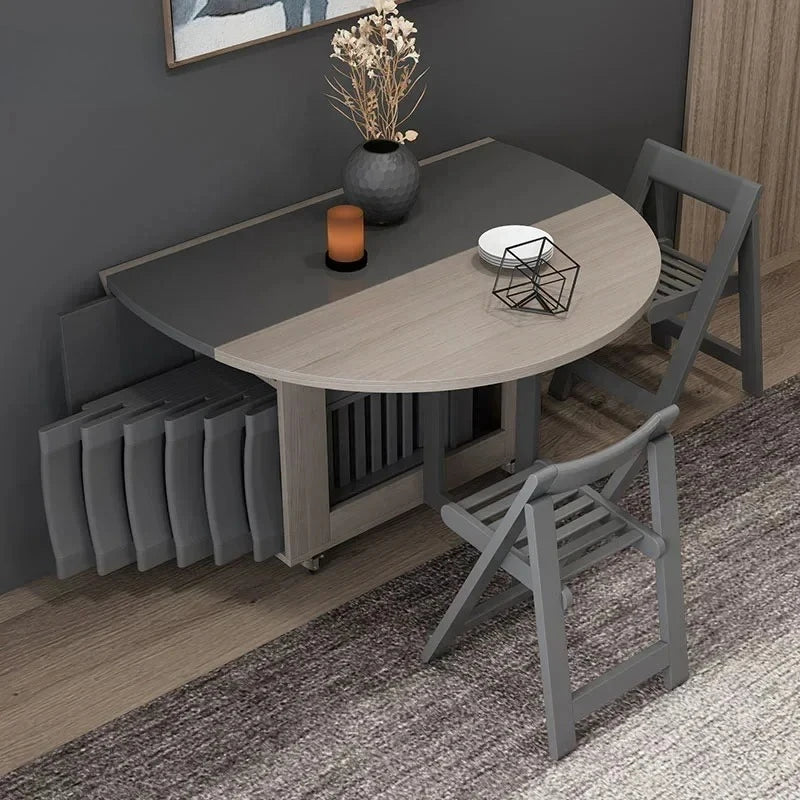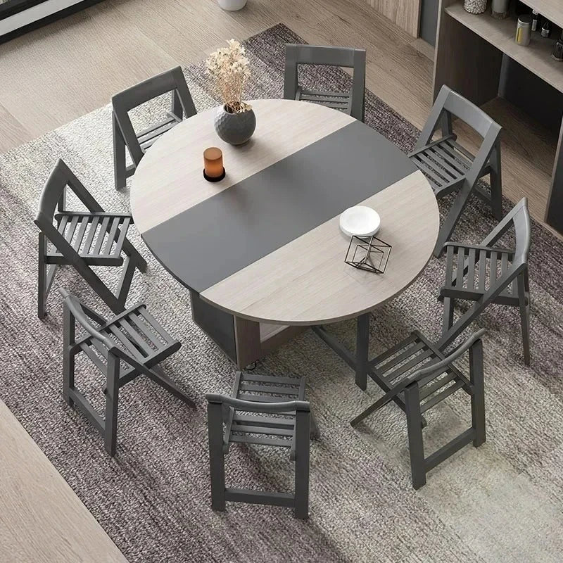 Fashion Folding Dining Table Furniture Multifunctional Round Movable Dining Table with Folding Chairs Marble Dining Table
