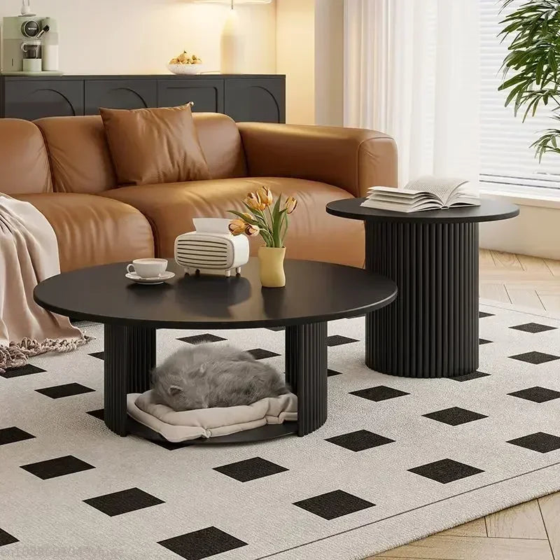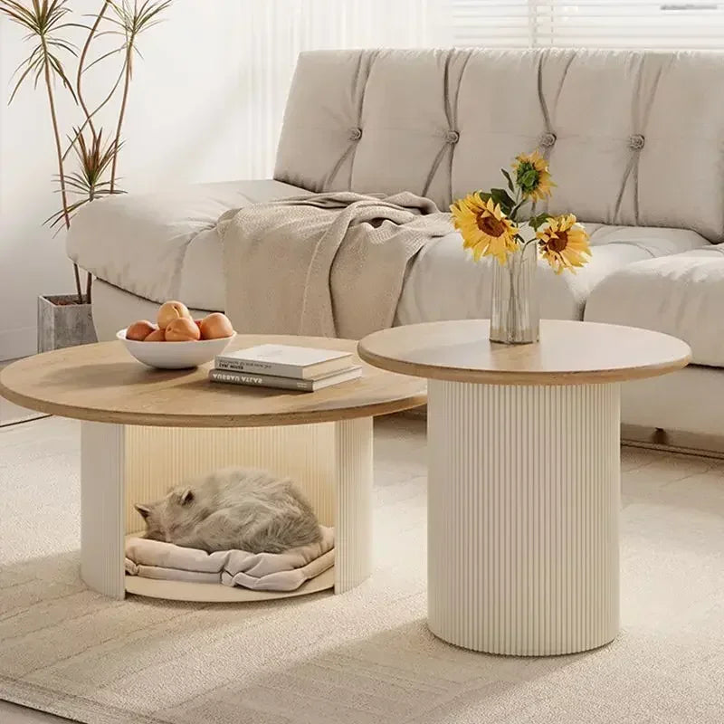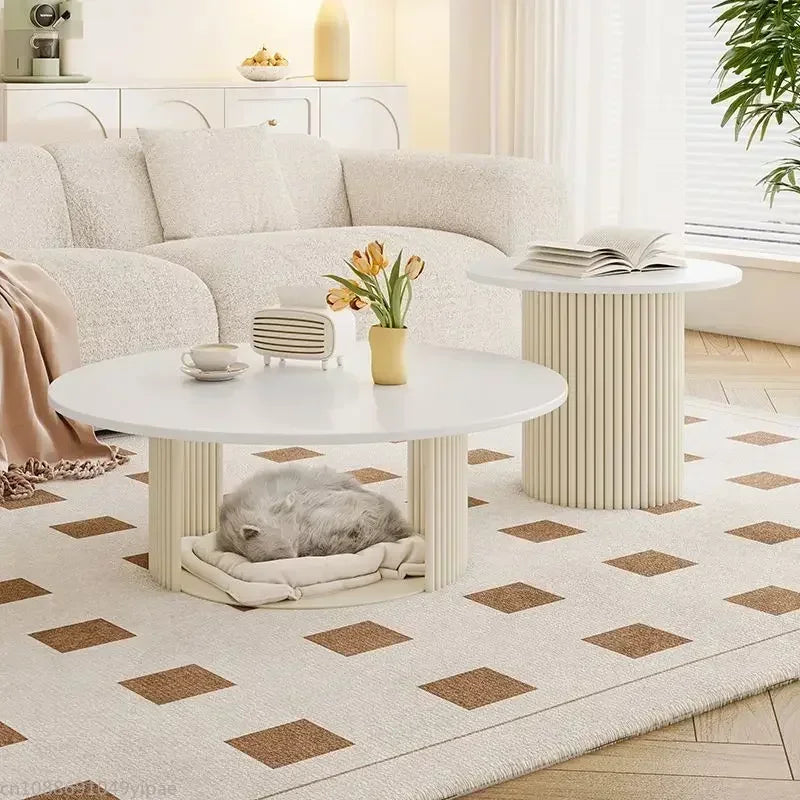 French Cream Style Coffee Table Combination Cat Nest Storage Coffee Table Solid Wood Oval Small Minimalist Furniture