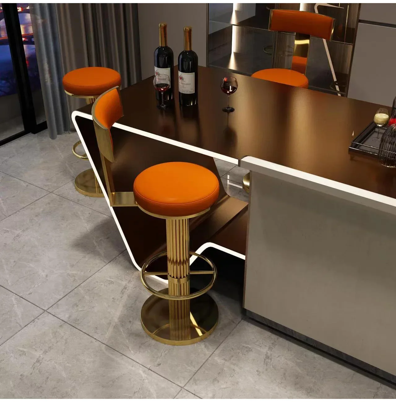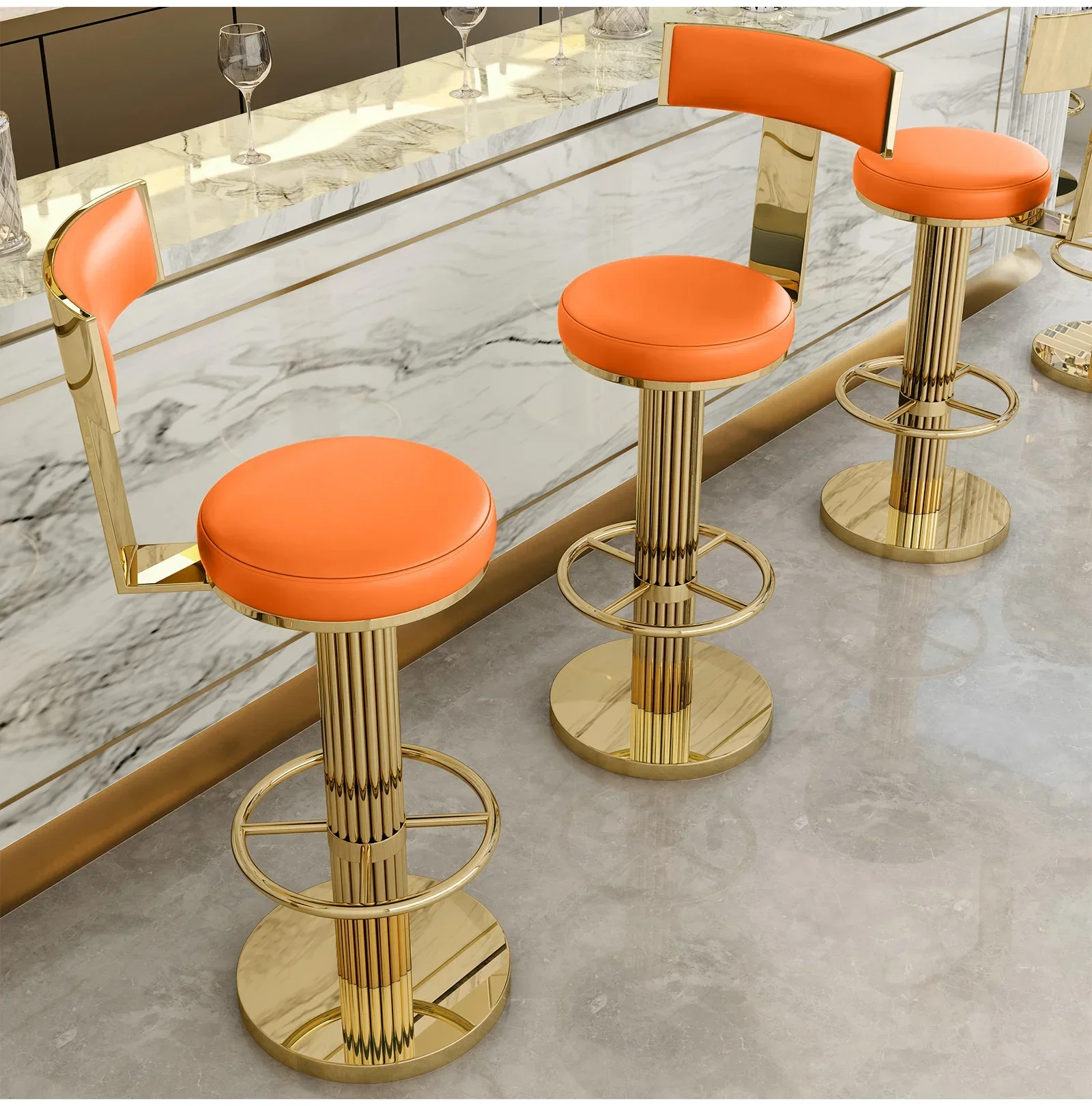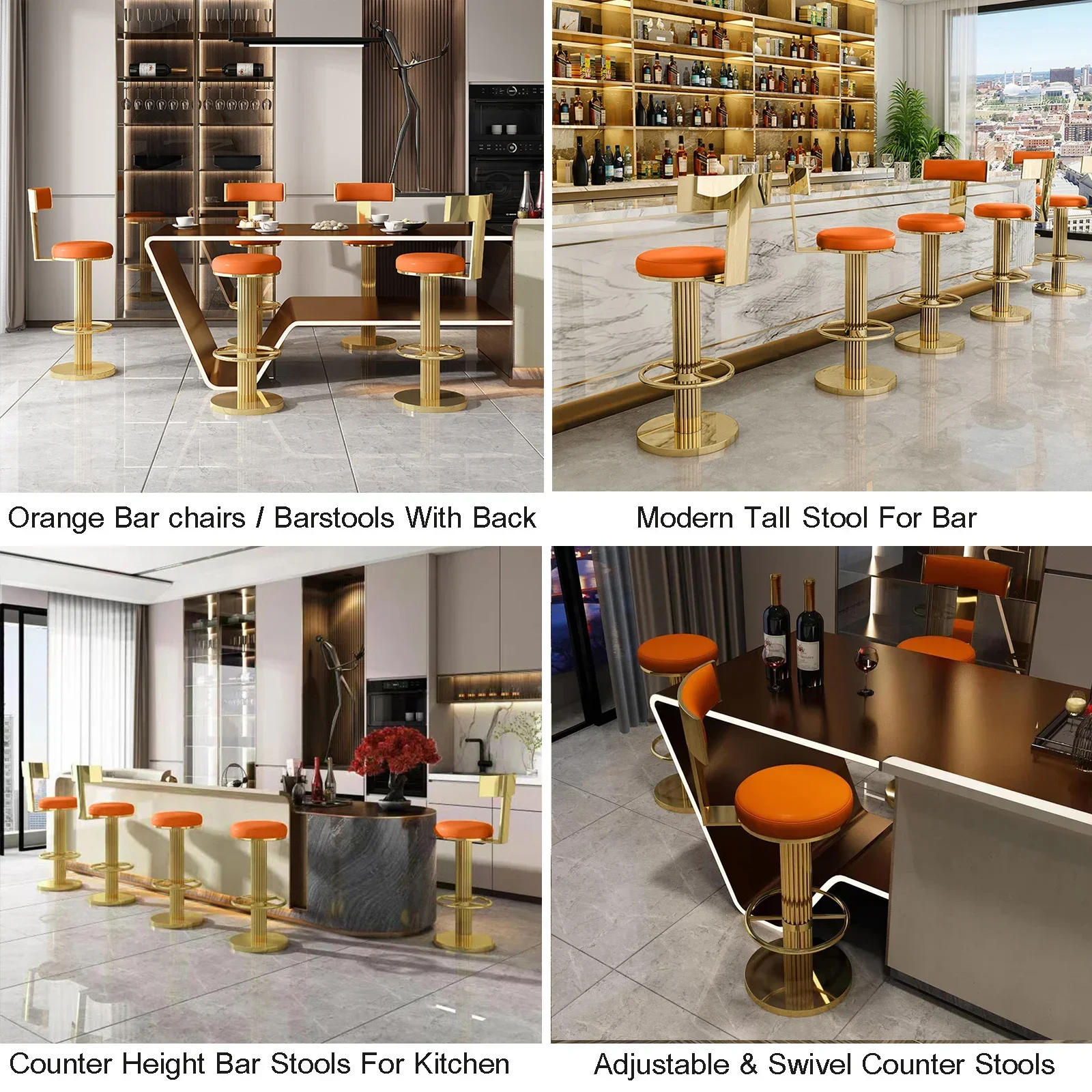 Golden Bar Chair Height Adjustable Swivel Counter Bar Stool Modern Stainless Steel Kitchen Counter Chair Dining Chairs Set