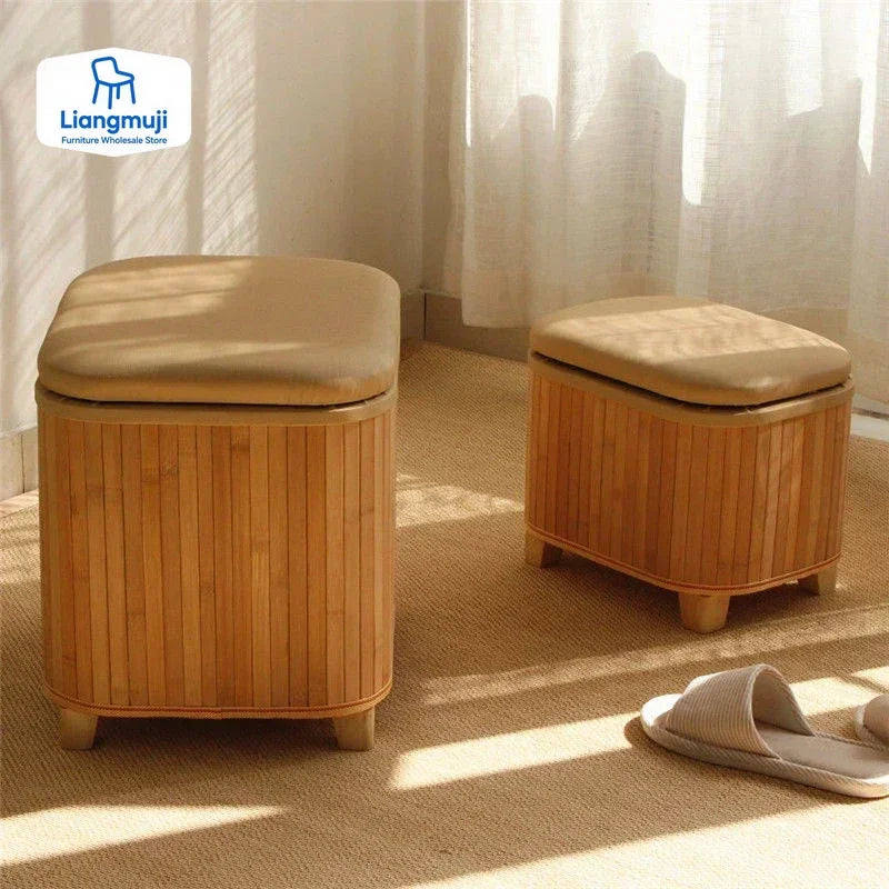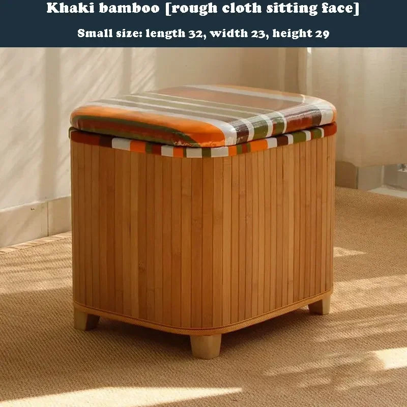 Household Solid Wood Small Square Stool with Storage Box Sundries Toys Organizer Japanese Hallway Shoes Change Footstool Ottoman