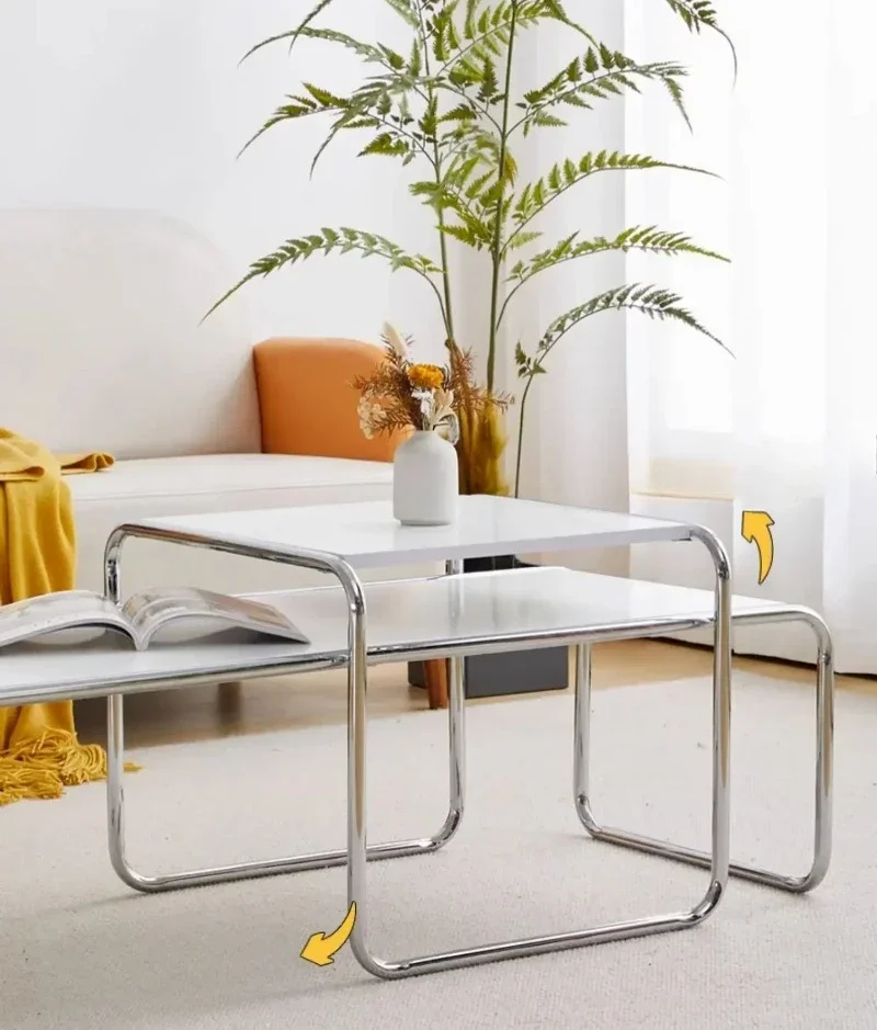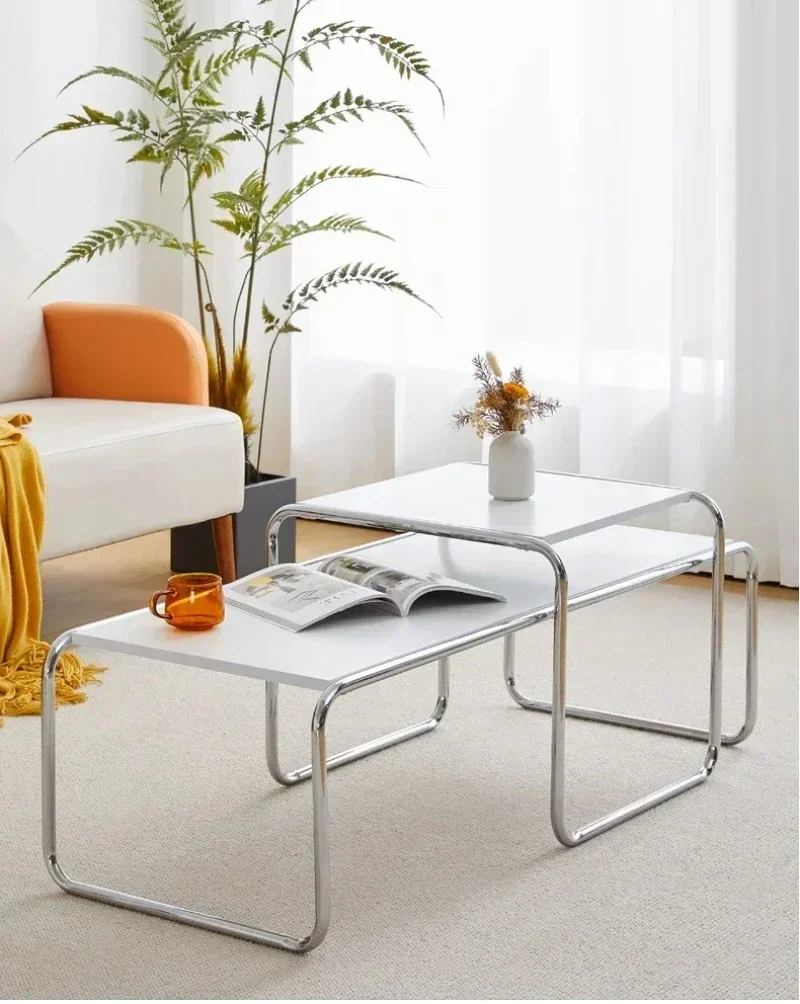 Features: This coffee table combines the Nordic minimalist design concept, creating a quiet and comfortable home environment with simple lines and bright colors. Its rectangular design is both practical and beautiful, and can be easily integrated into various modern home styles. The combination of white panel and metal frame not only looks neat, but also reveals an elegant temperament. In addition, the size of the coffee table is moderate, which will not occupy too much space, but also meet the daily needs of placing items.