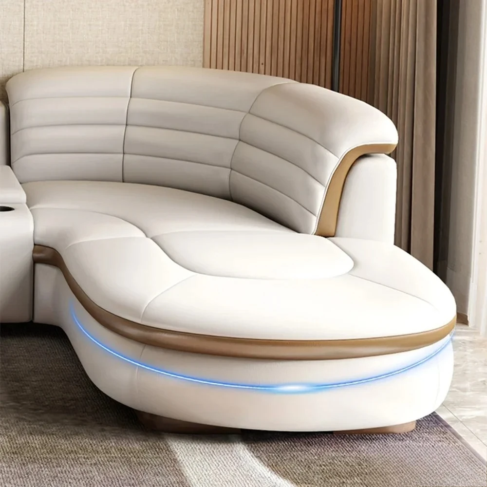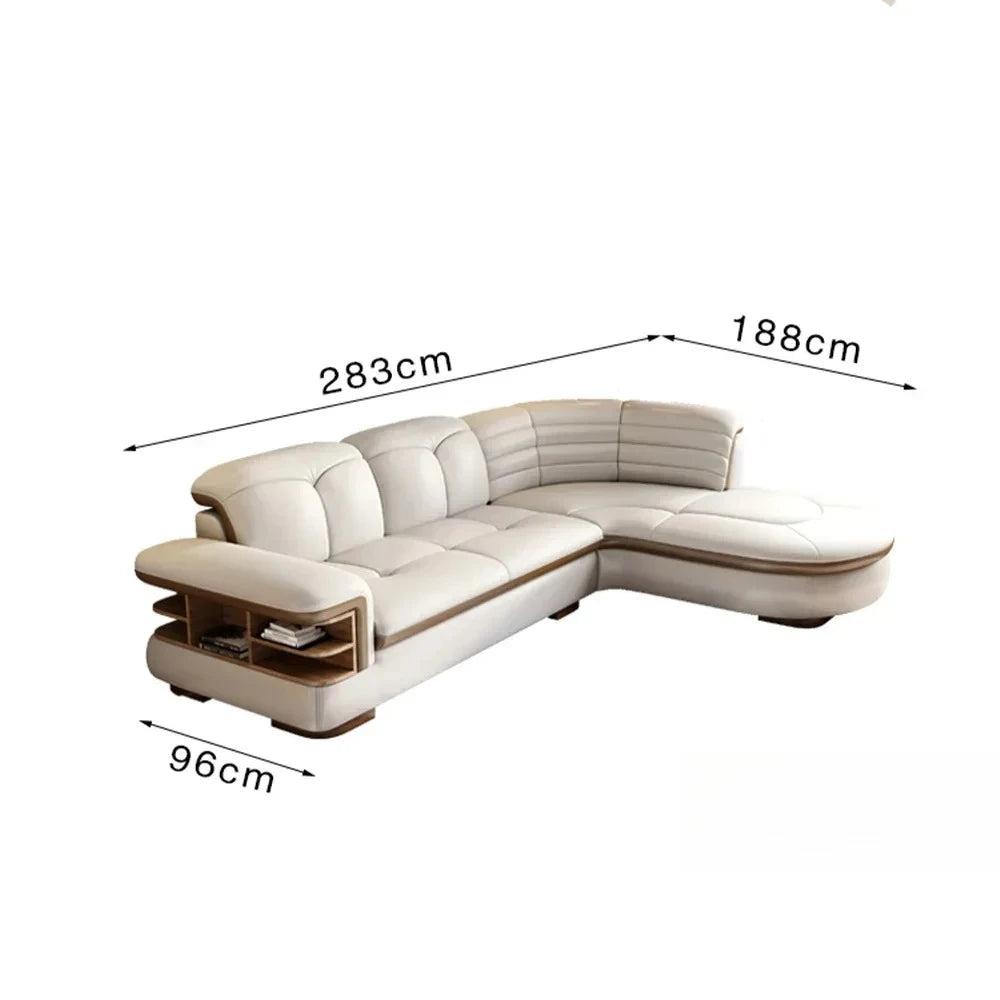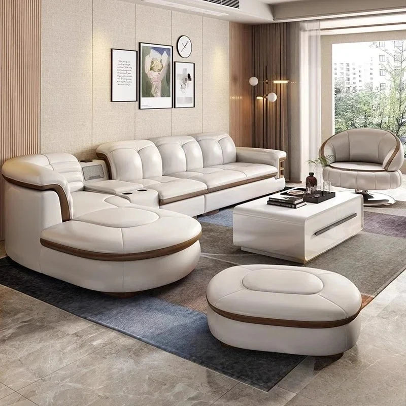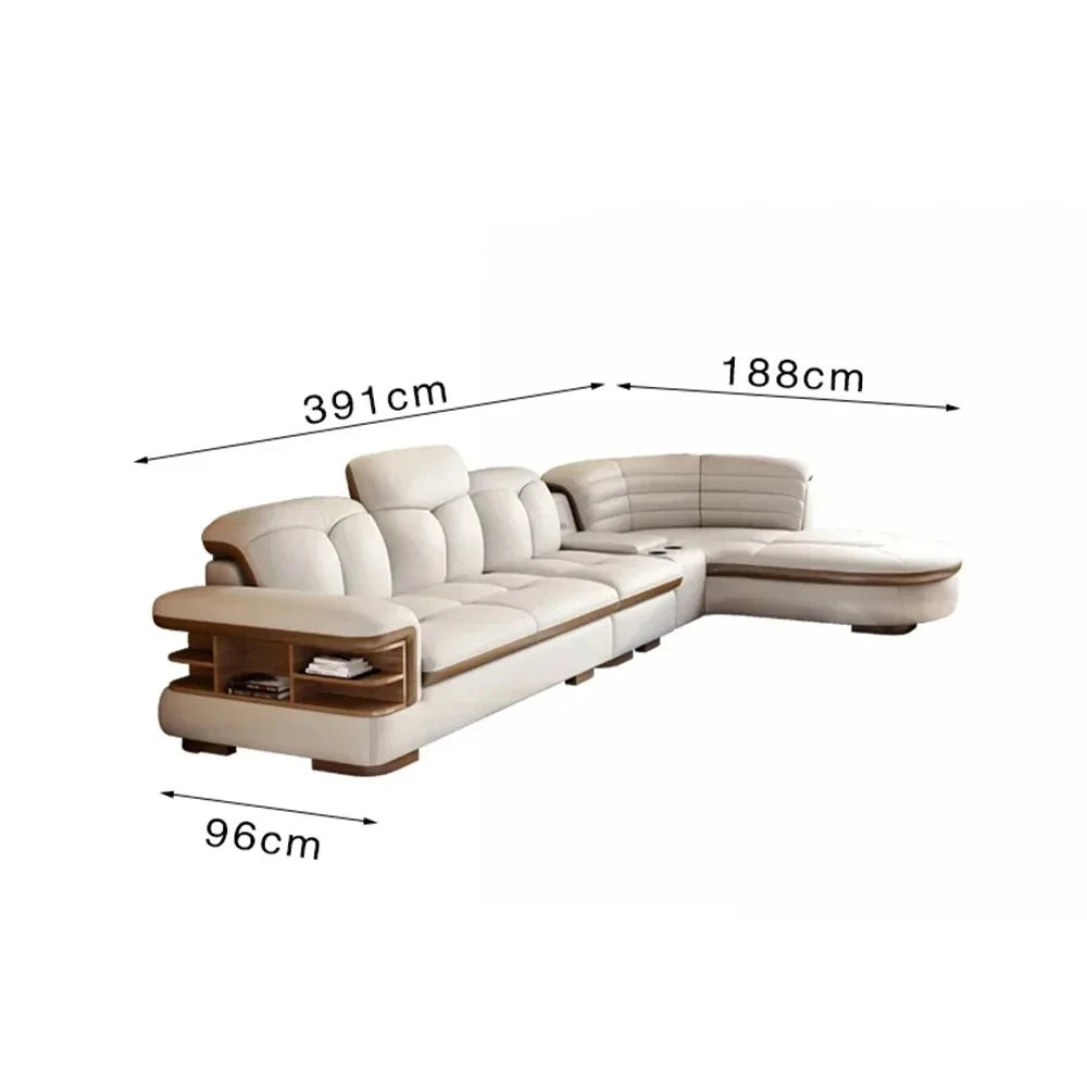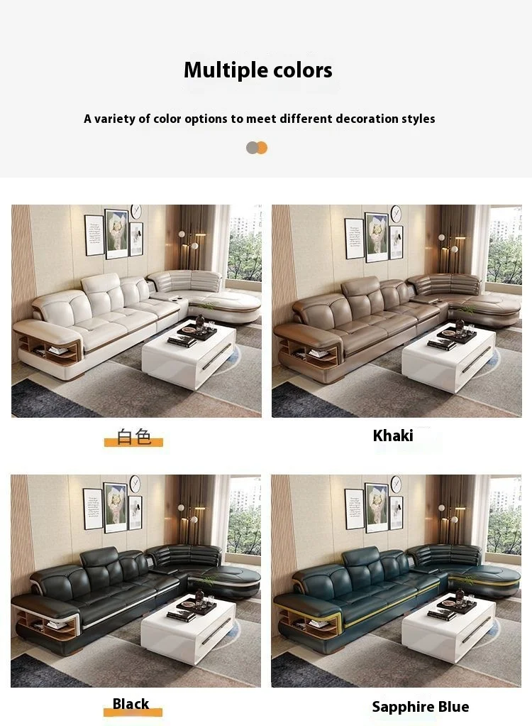 Luxury L-Shaped Genuine Leather Sectional Sofa Sets with USB, Bluetooth Speaker - MINGDIBAO Living Room Italian Leather Couches