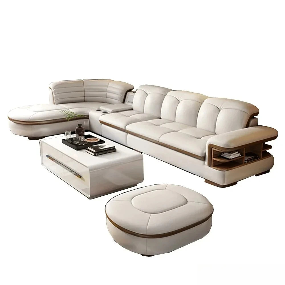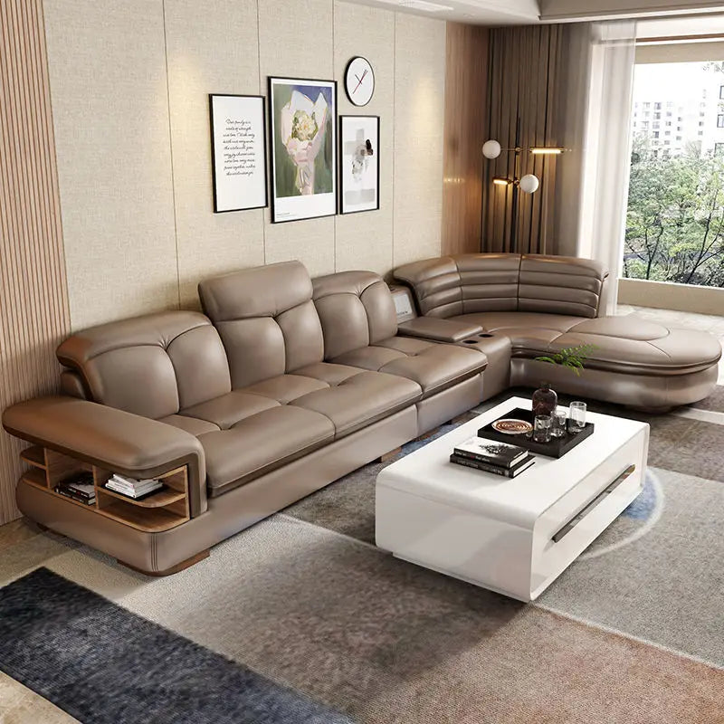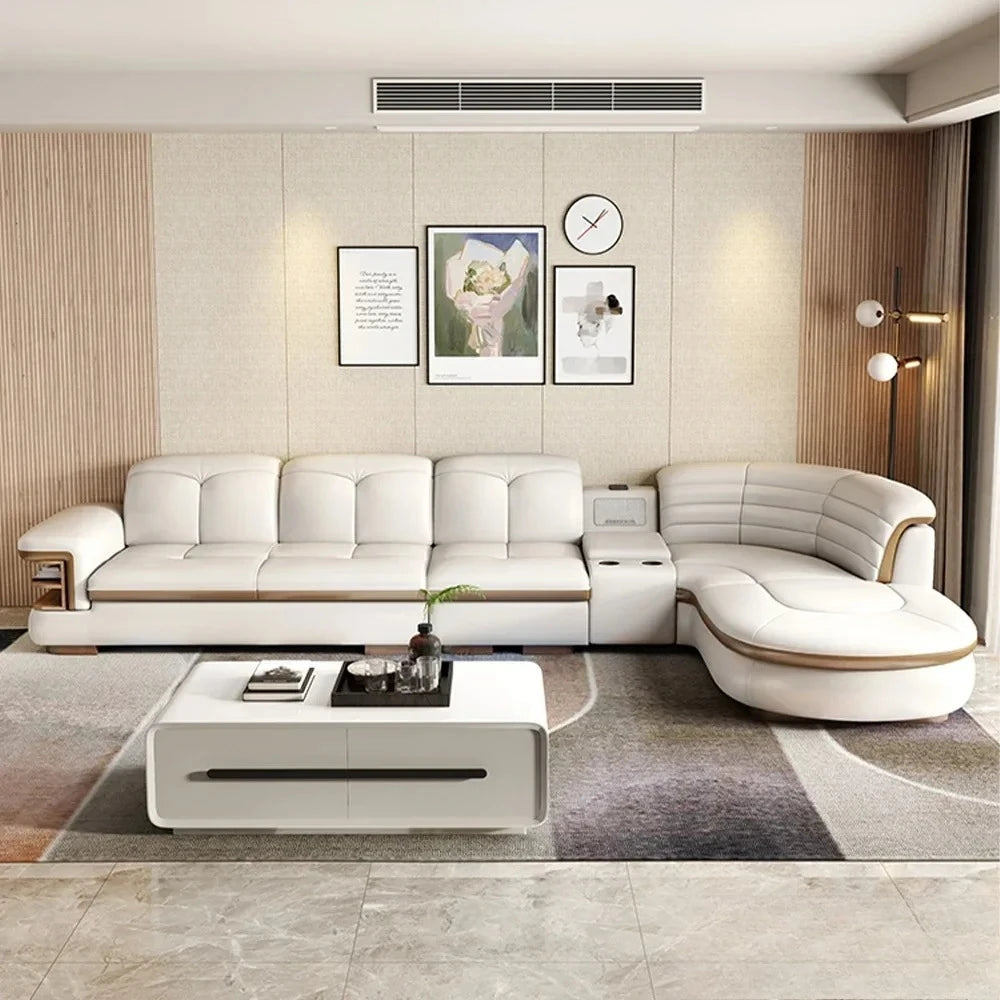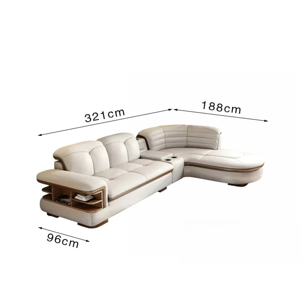 Luxury L-Shaped Genuine Leather Sectional Sofa Sets with USB, Bluetooth Speaker - MINGDIBAO Living Room Italian Leather Couches