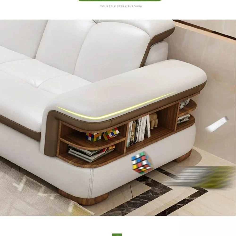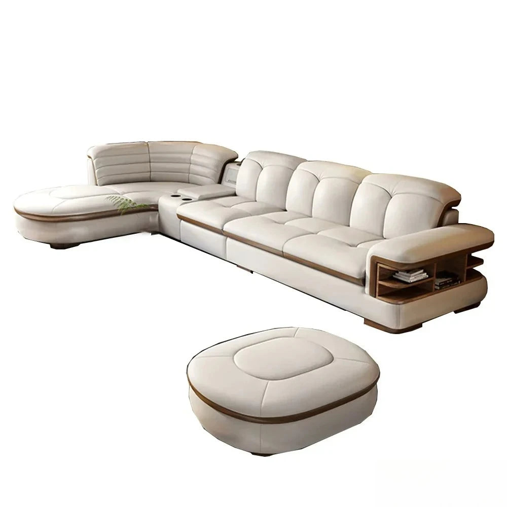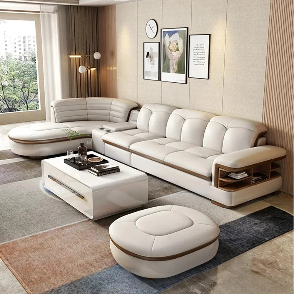 Luxury L-Shaped Genuine Leather Sectional Sofa Sets with USB, Bluetooth Speaker - MINGDIBAO Living Room Italian Leather Couches