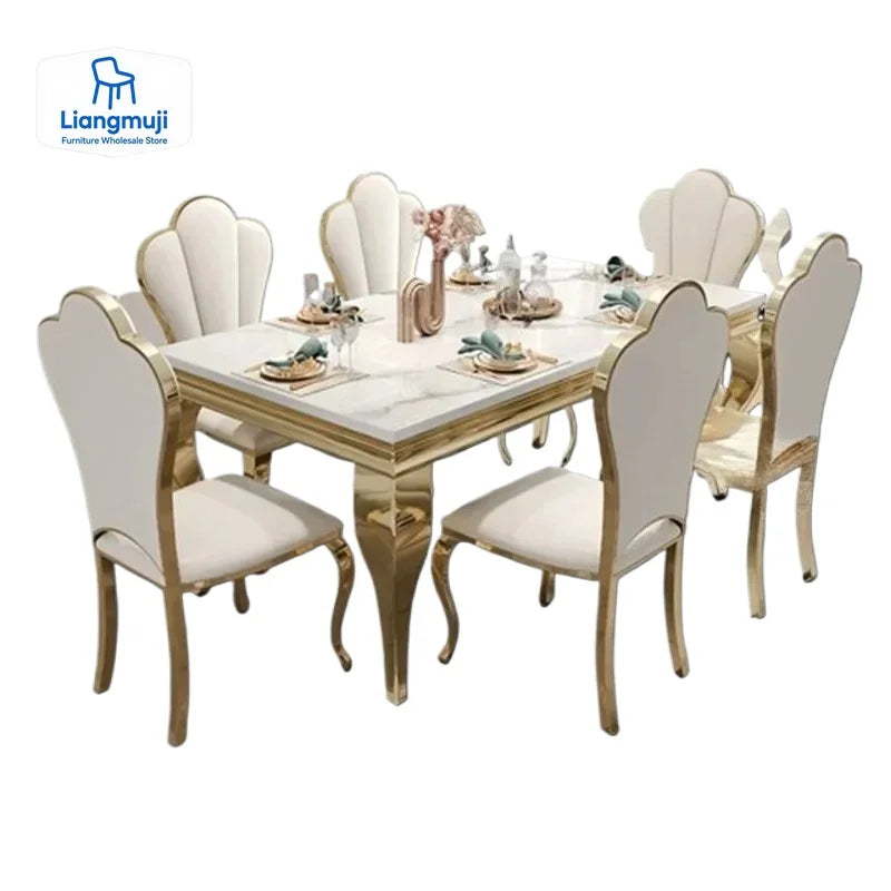 Marble Luxury Dining Table Unique Gold Individual White Italian Dining Table Rectangular Design Mesa Comedor Home Furniture