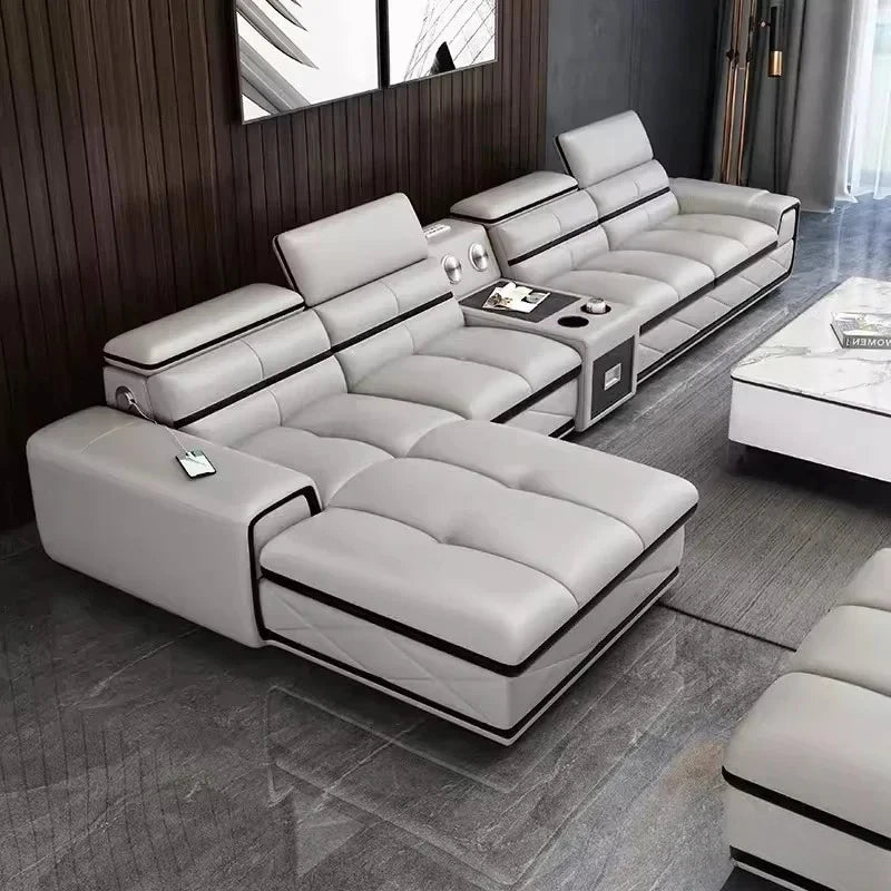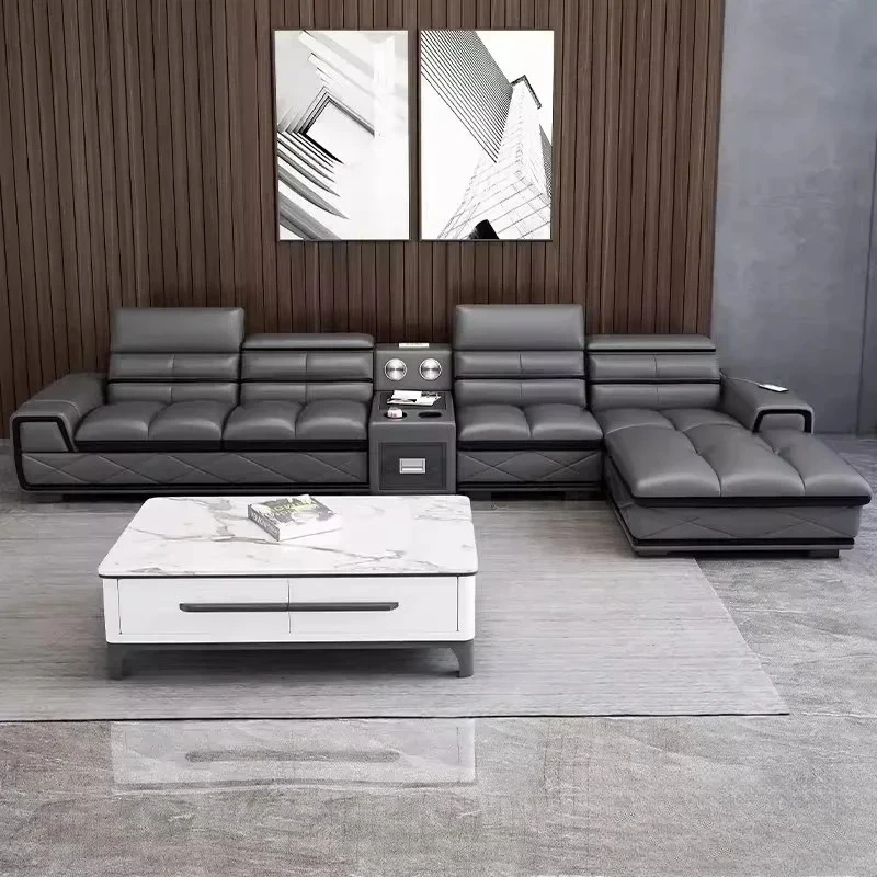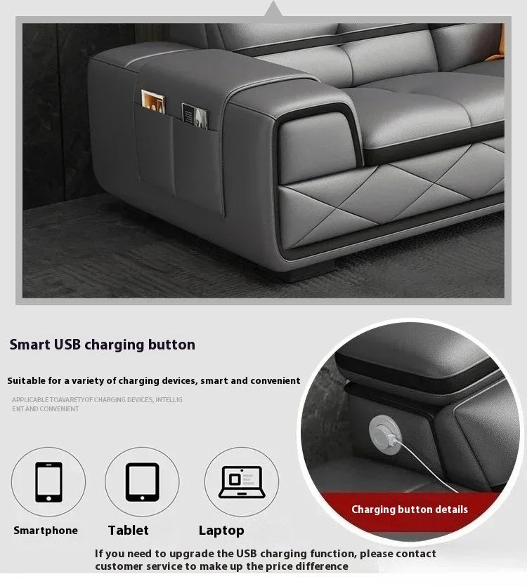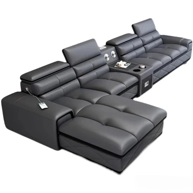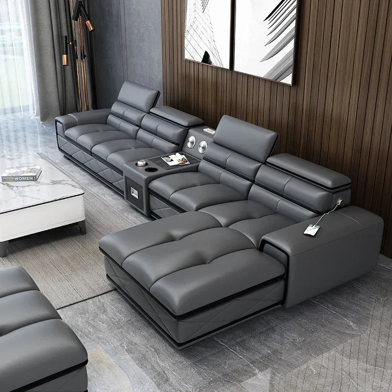 Modern Genuine Leather Sectional Sofa Sets Couch Sofas with USB Charging and Bluetooth Speaker - MINGDIBAO Living Room Furniture
