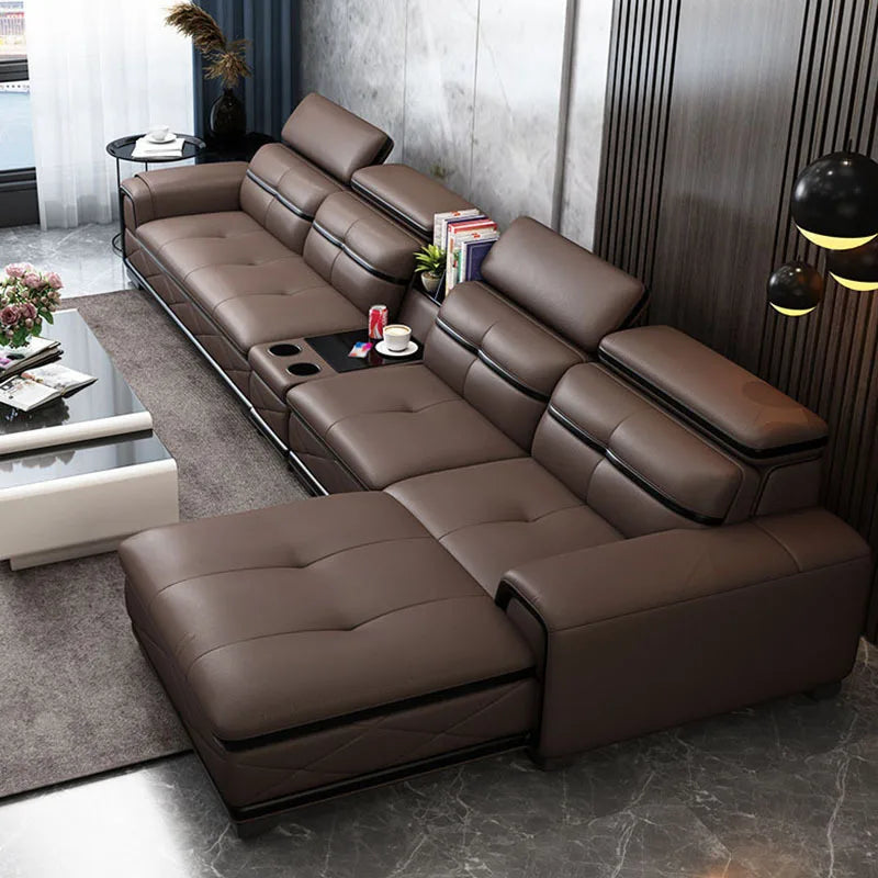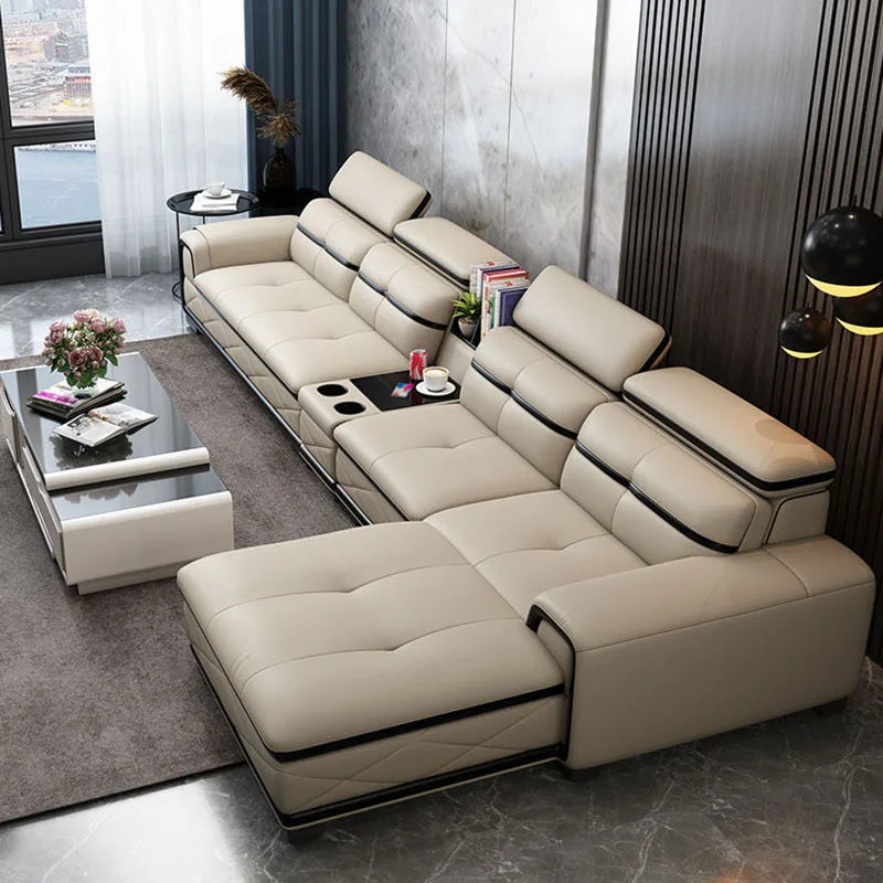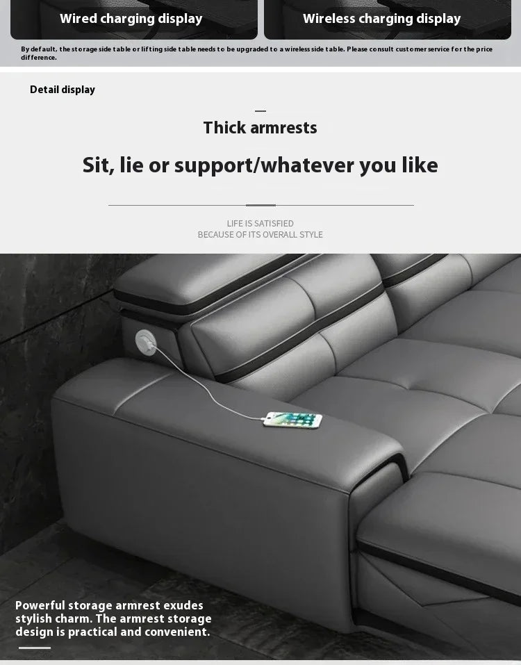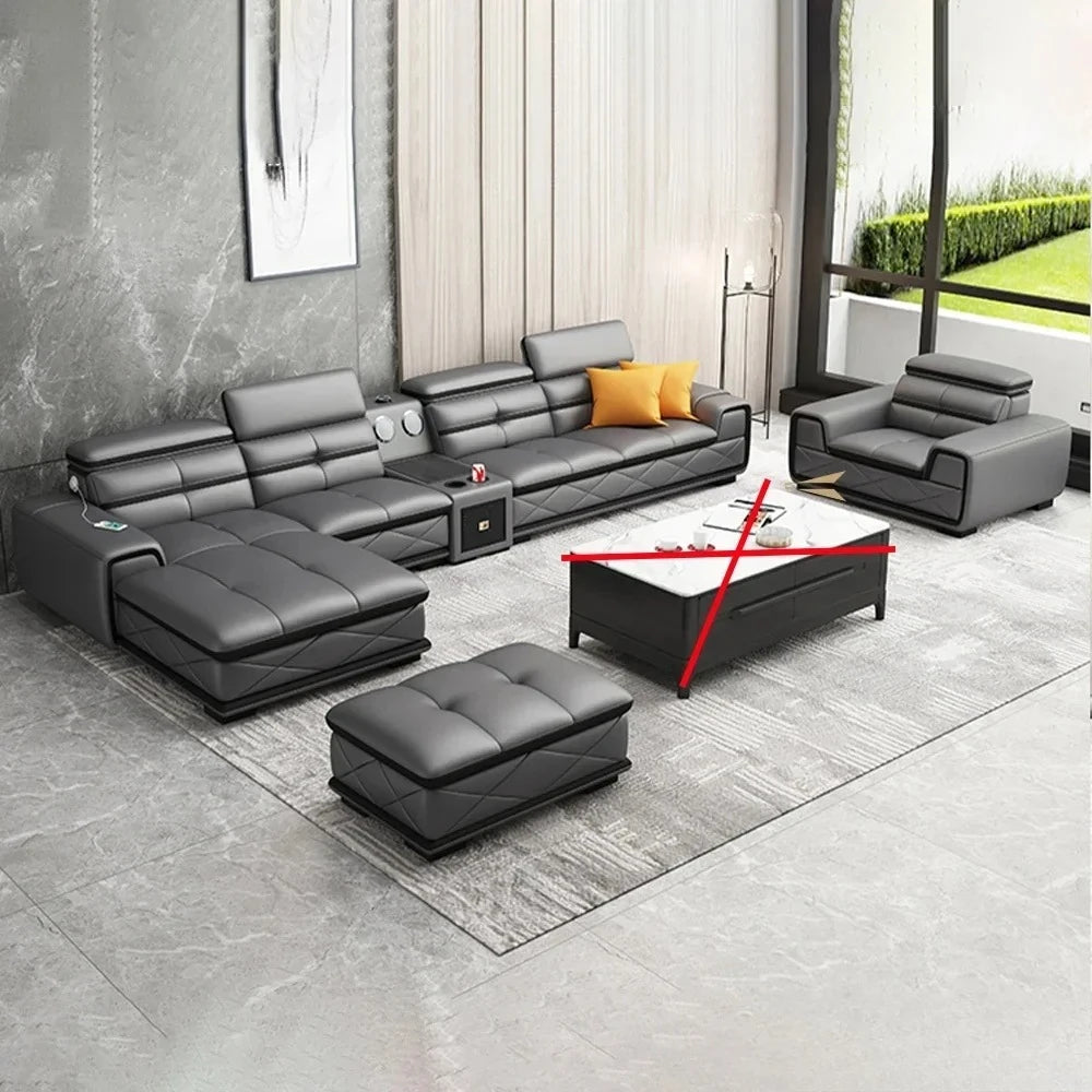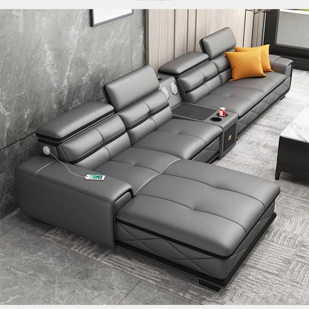 Modern Genuine Leather Sectional Sofa Sets Couch Sofas with USB Charging and Bluetooth Speaker - MINGDIBAO Living Room Furniture