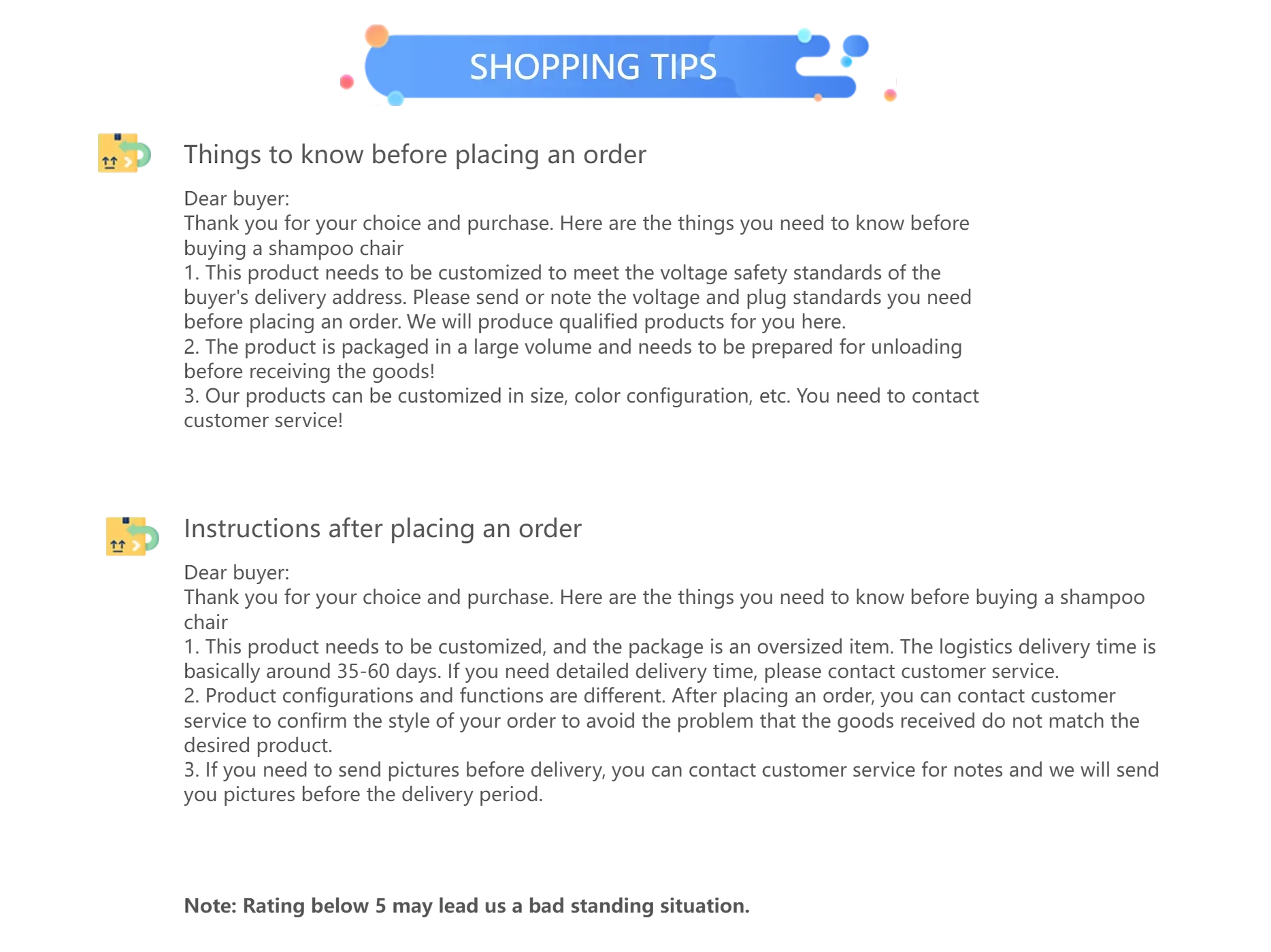 Product Selling Points 2: salon equipment furniture