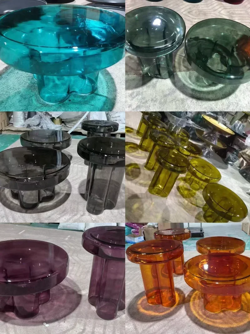 Transparent Glass Coffee Table Modern Round Bedside Table Nordic Petal Side Table Living Room Creative Furniture Round Table