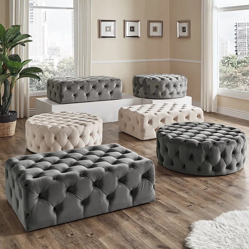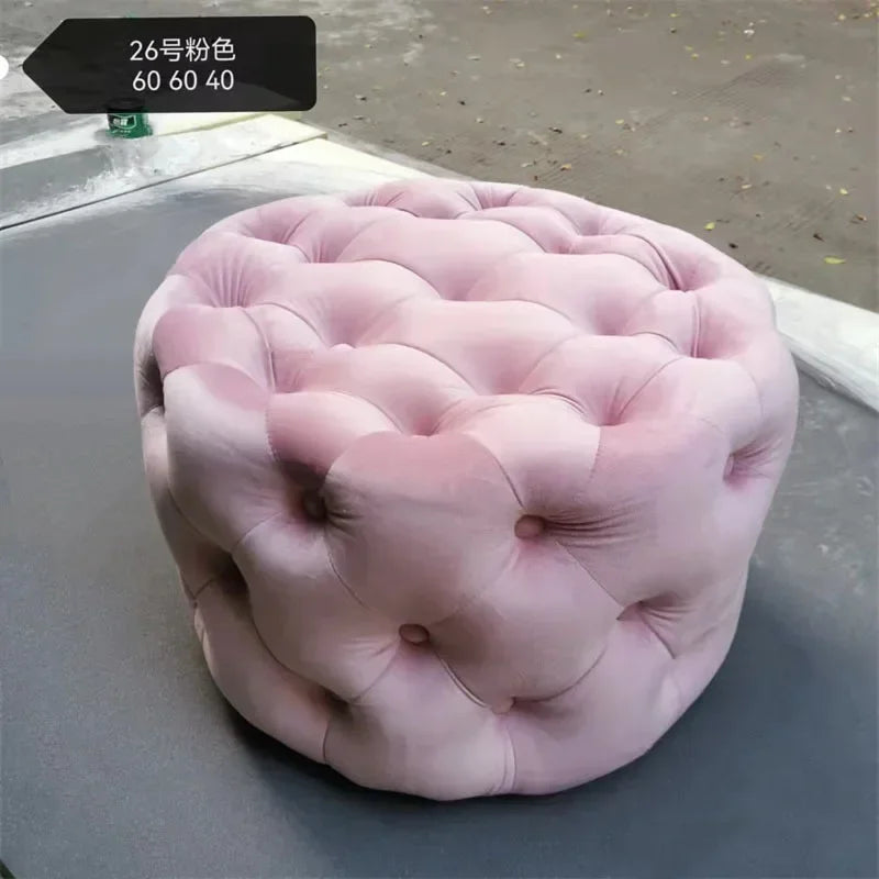Velvet Round Ottoman Luxury Sofa Living Room Furniture Modern Bedroom Floor Pouf Clothing Store Shoes-changing Soft Stool B