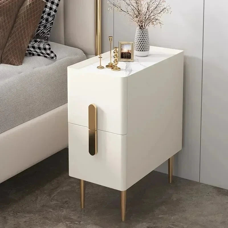 White Minimalist Night Table Metal Nordic Modern Luxury Gold Nightstands Drawers Storage Mesitas De Noche Furniture for Bedroom