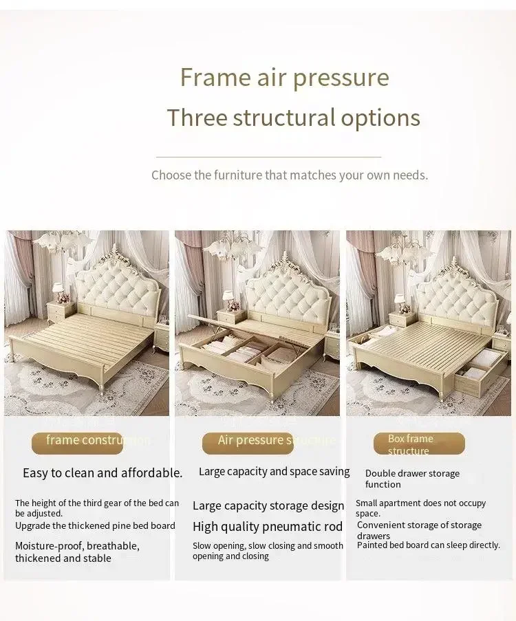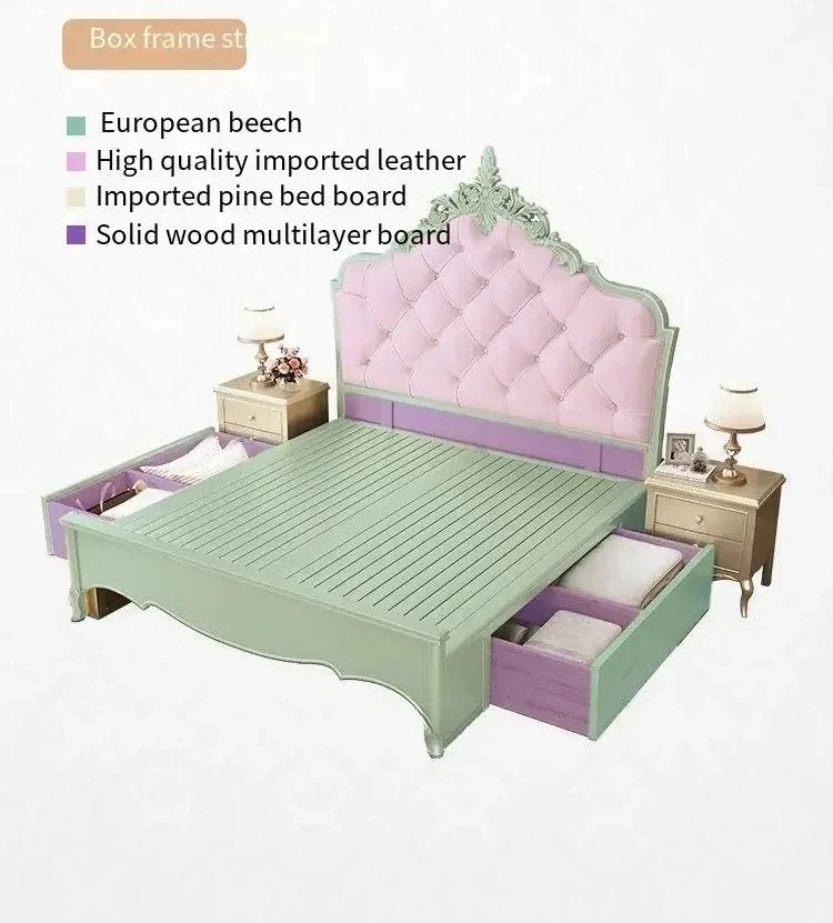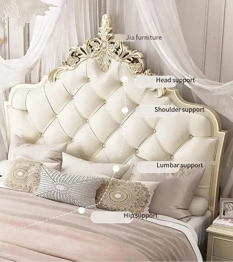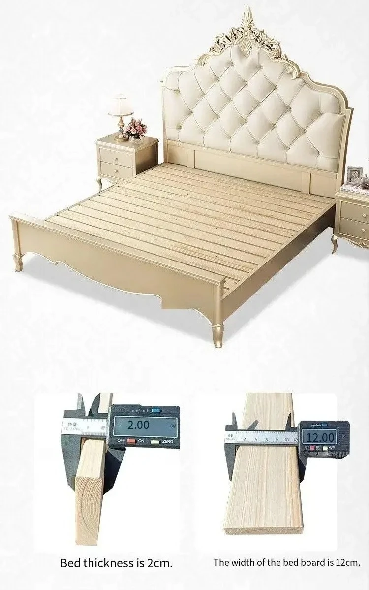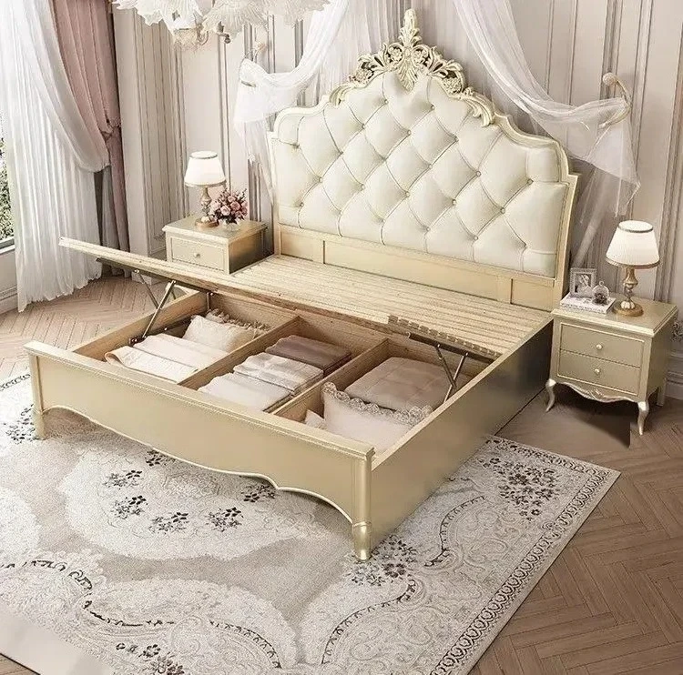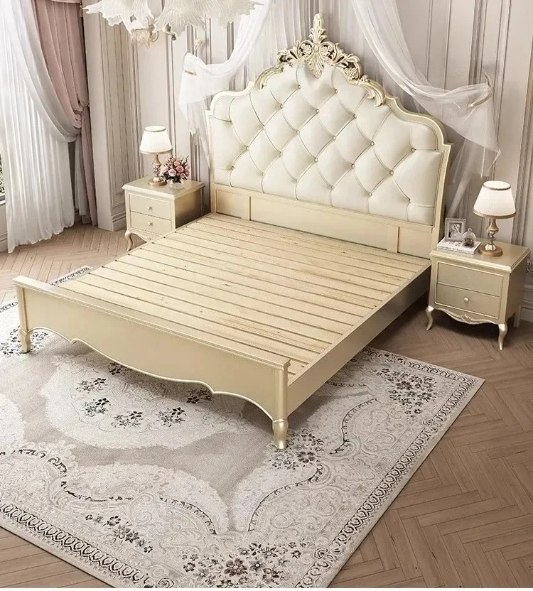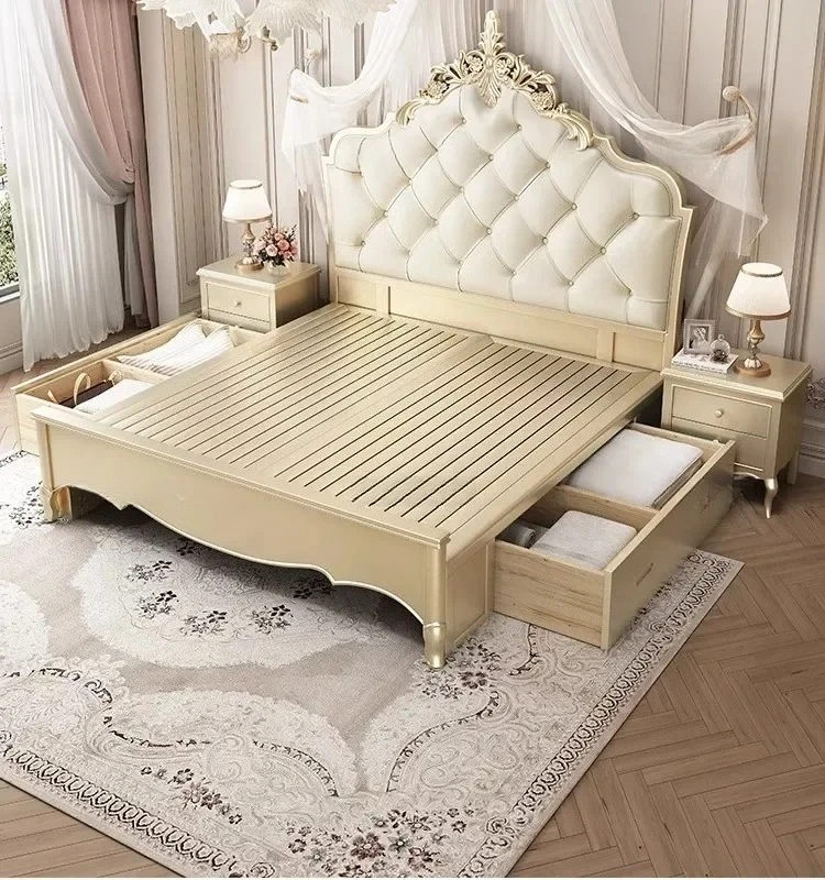 Wooden Frame Double Bed Headboard Luxury Shelves Twin Queen French Bed 150x200 King Size Cama Matrimonial Bedroom Furniture