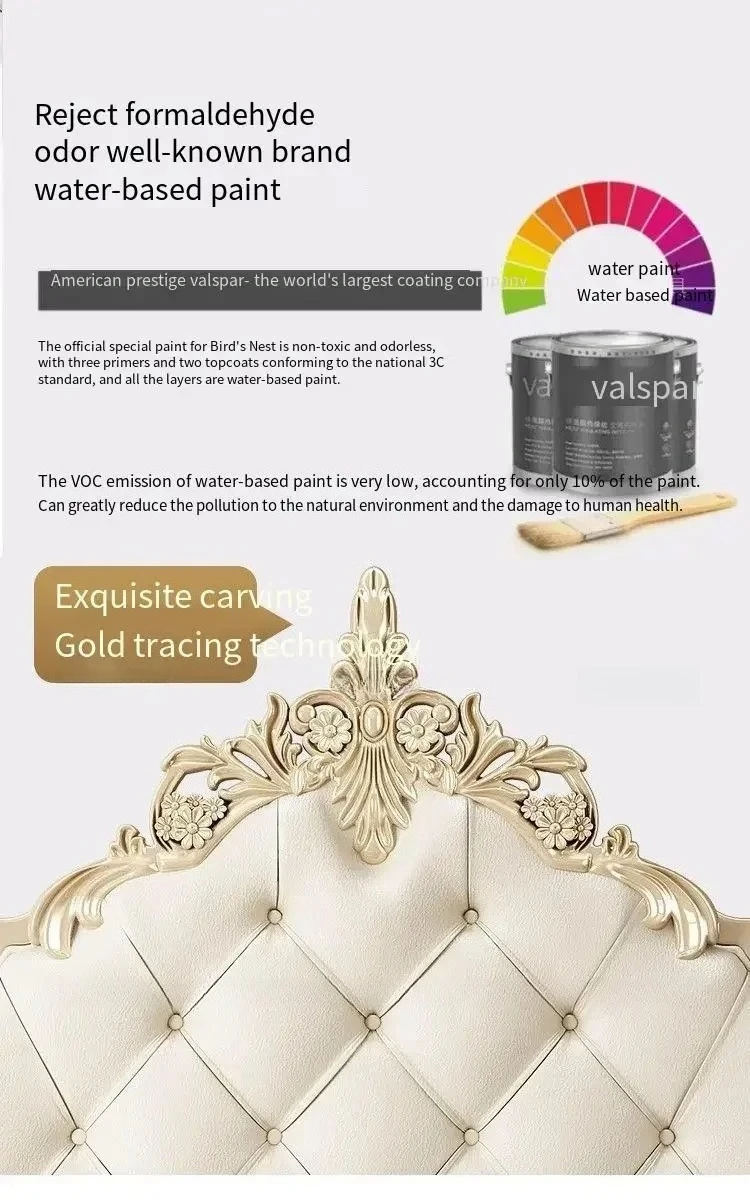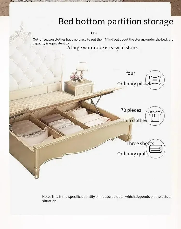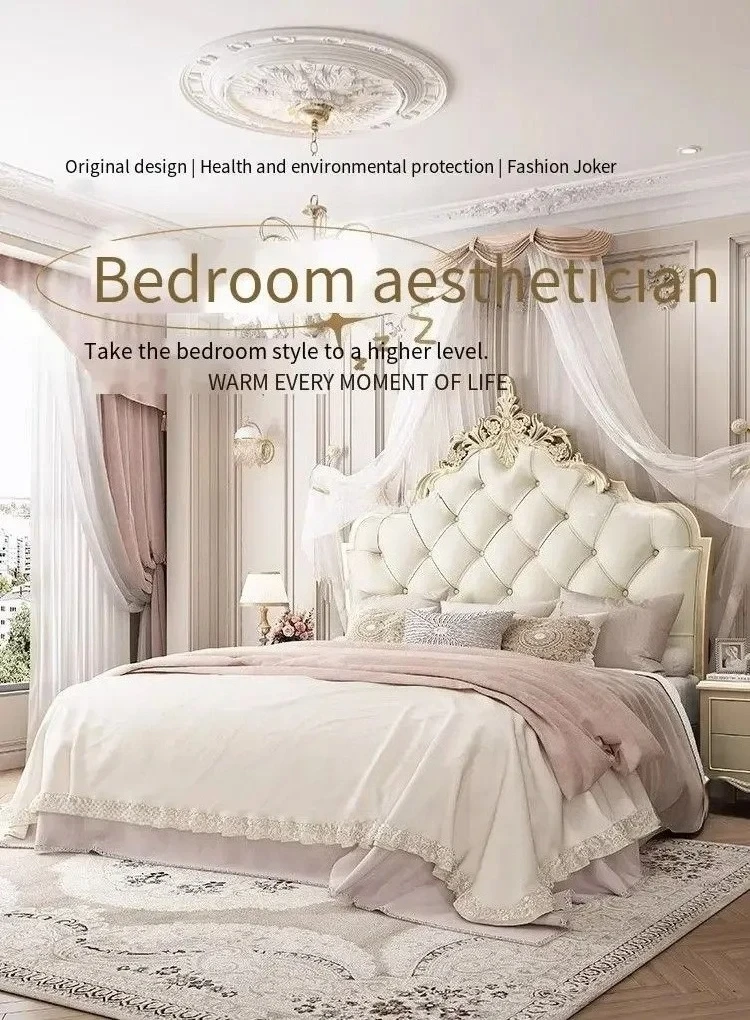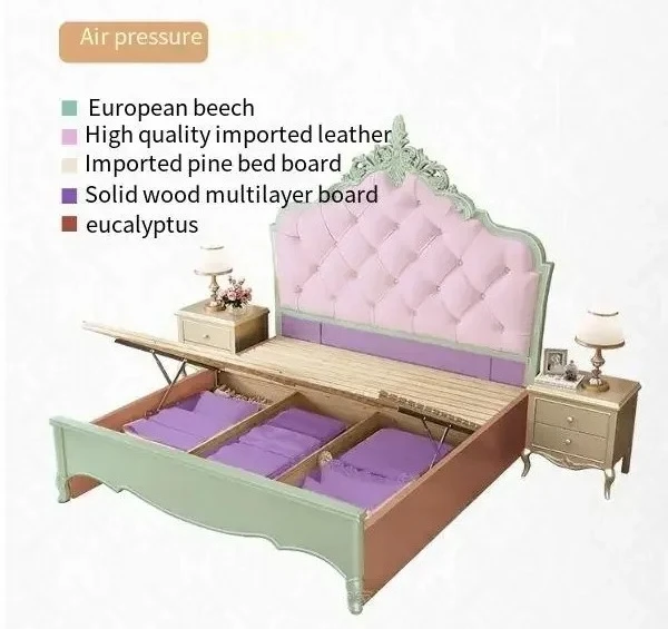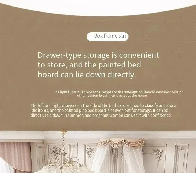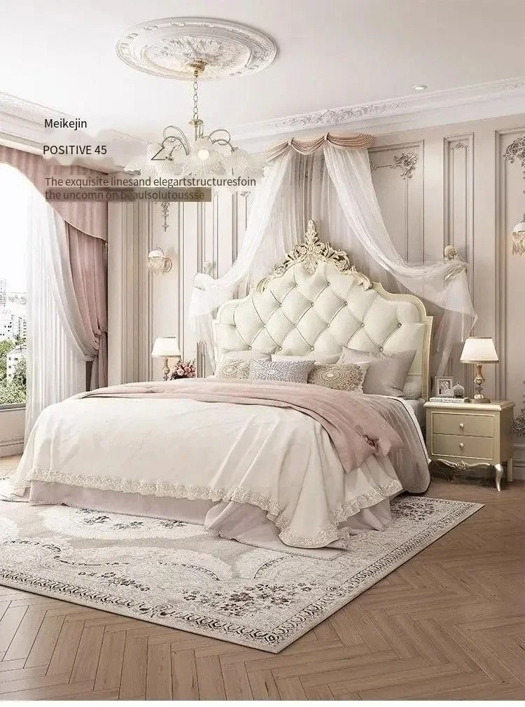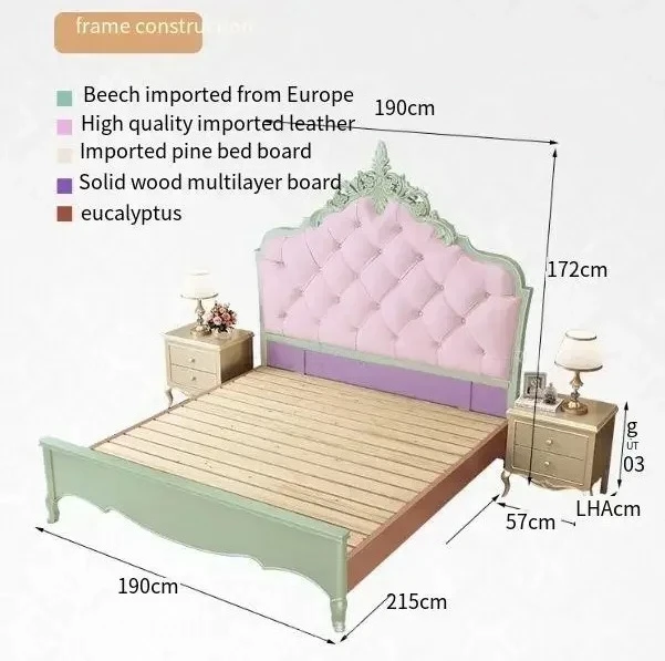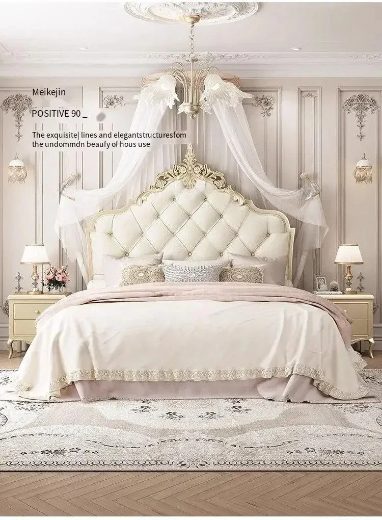 Wooden Frame Double Bed Headboard Luxury Shelves Twin Queen French Bed 150x200 King Size Cama Matrimonial Bedroom Furniture